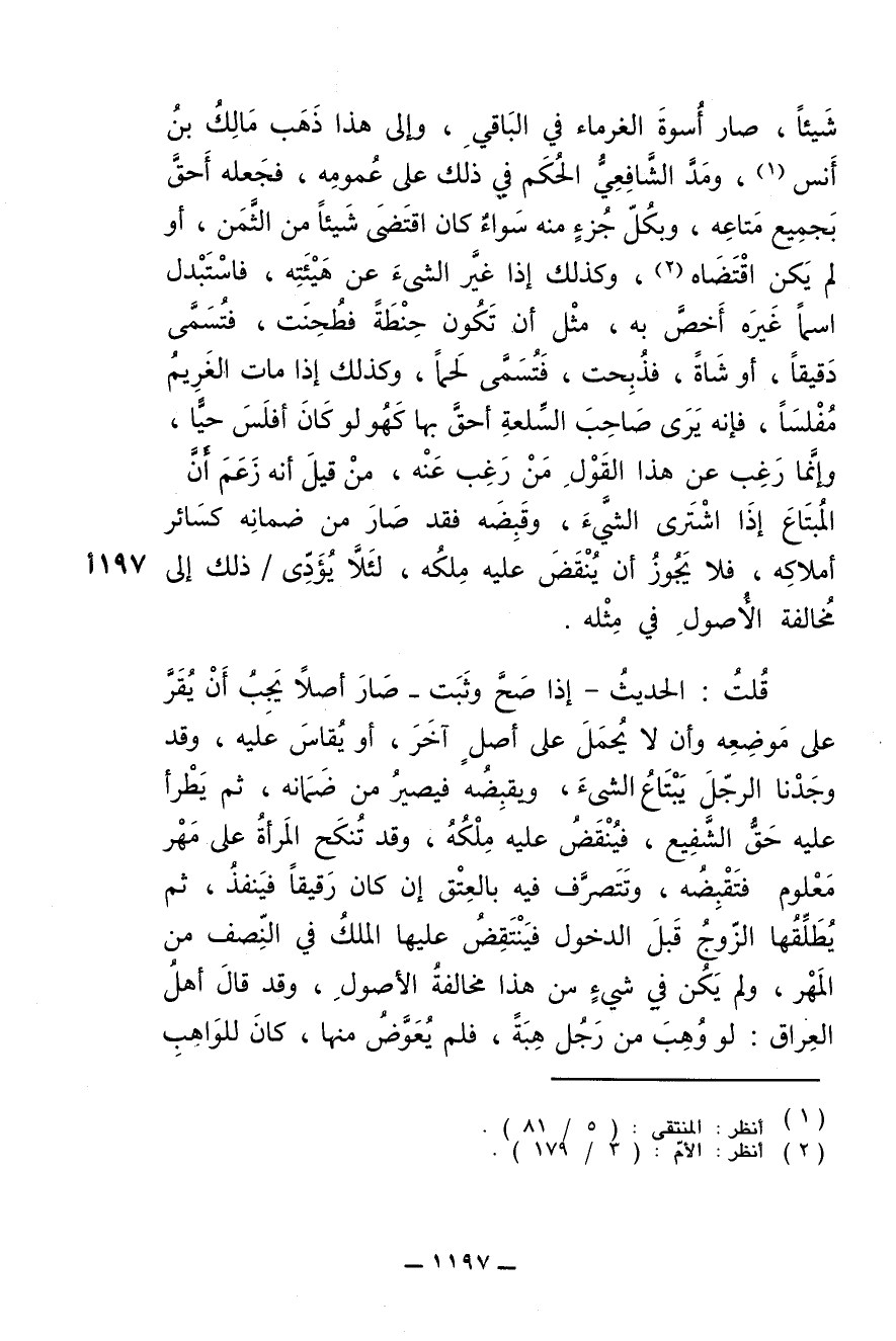 قلت: الحديث - إذا صحَّ وثَبَت - صار أصلا يجب أن يُقَرَّ على موضعه وأن لا يُحمَل على أصل آخر , أو يُقاس عليه , وقد وجدنا الرجل يَبتاع الشيء , ويقبِضه فيصير من ضمانه , ثم يطرأ عليه حقّ الشّفيع , فيُنقَض عليه مِلكُه , وقد تُنكَح المرأة على مَهْر معلوم فتقبِضه , وتتصرّف فيه بالعتق إن كان رقيقا فيَنفذ , ثم يُطلِّقها الزوج قبل الدخول فينتَقِض عليها الملك في النصف من المهر , ولم يكن في شيء من هذا مخالفة الأصول , وقد قال أهل العِراق: لو وُهِب من رجُل هِبَة , فلم يُعَوِّض منها , كان للواهِب