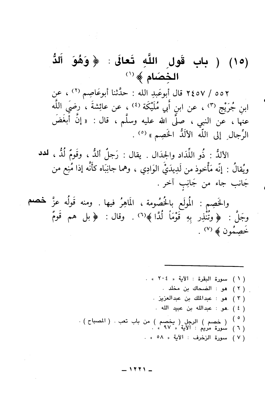 (15) (باب قول الله تعالى: {وهو ألد الخصام})