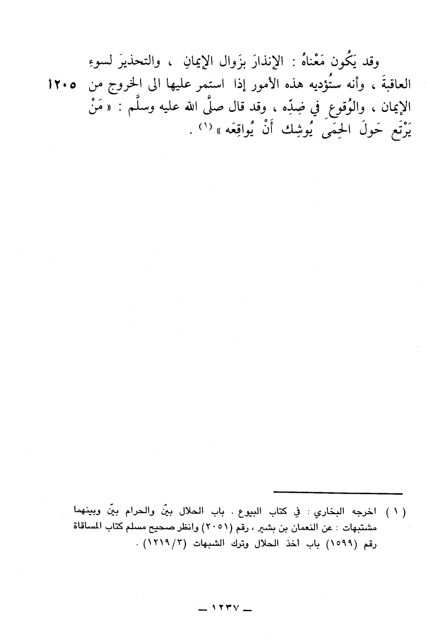 وقد يكون معناه: الإنذار بزوال الإيمان، والتحذير لسوء العاقبة، وأنه ستؤديه هذه الأمور إذا استمر عليها إلى الخروج من الإيمان، والوقوع في ضده، وقد قال صلى الله عليه وسلم: (من يرتع حول الحمى يوشك أن يواقعه).