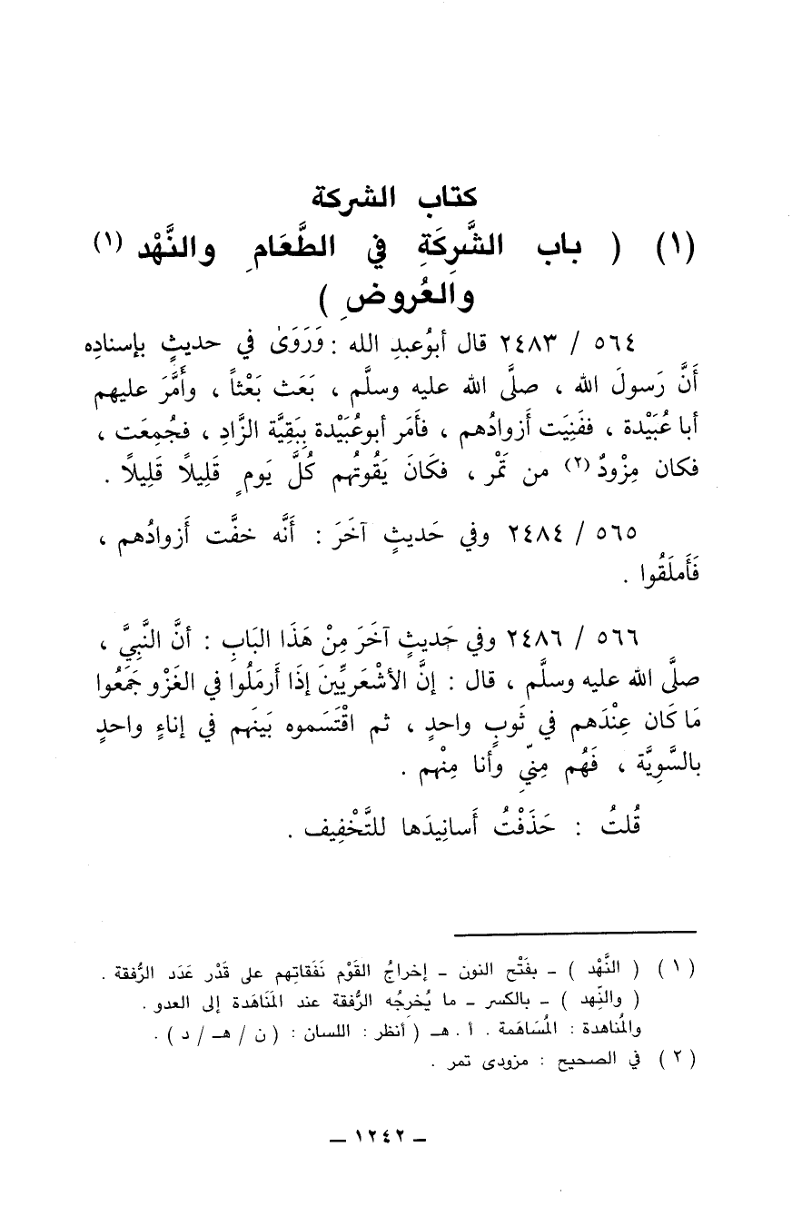 (1) (باب الشَّرِكَةِ في الطَّعَام والنَّهد والعروض)