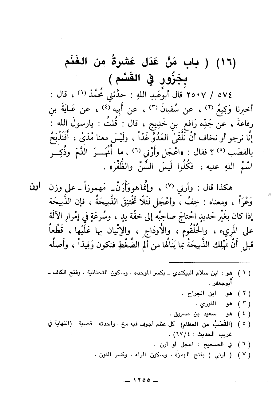 (16) (باب من عدل عشرة من الغنم بجزور في القسم)