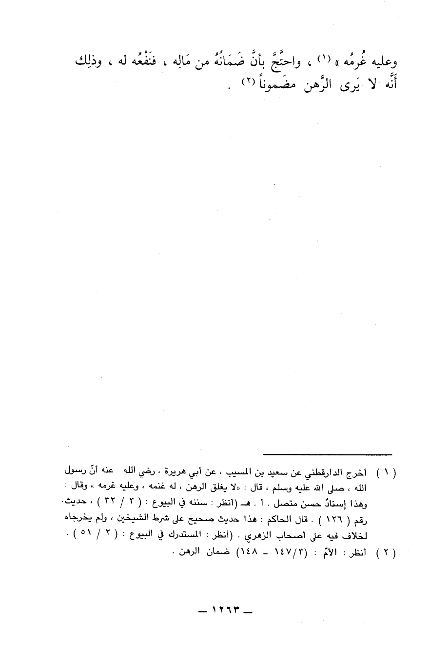 وعليه غرمه)، واحتج بأن ضمانه من ماله، فنفعه له، وذلك أنه لا يرى الرهن مضمونا.