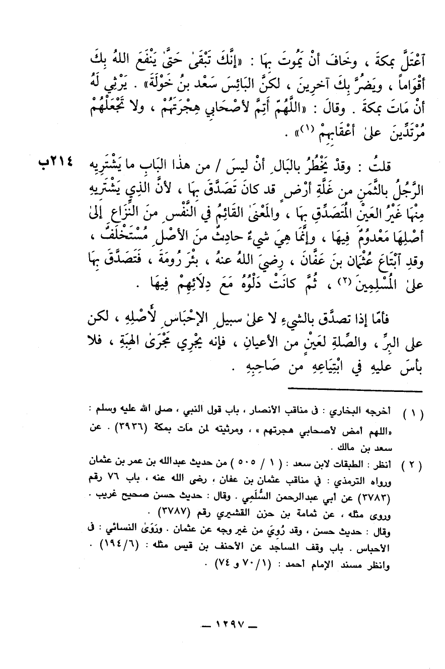 قلت: وقد يخطر بالبال أن ليس/ من هذا الباب ما يشتريه الرجل بالثمن من غلة أرض قد كان تصدق بها، لأن الذي يشتريه منها غير العين المتصدق بها، والمعنى القائم في النفس من انتزاع إلى أصلها معدوم فيها، وإنما هي شيء حادث من الأصل مستخلف، وقد ابتاع عثمان بن عفان، رضي الله عنه، بئر رومة، فتصدق بها على المسلمي، ثم كانت دلوه مع دلائهم فيها.
