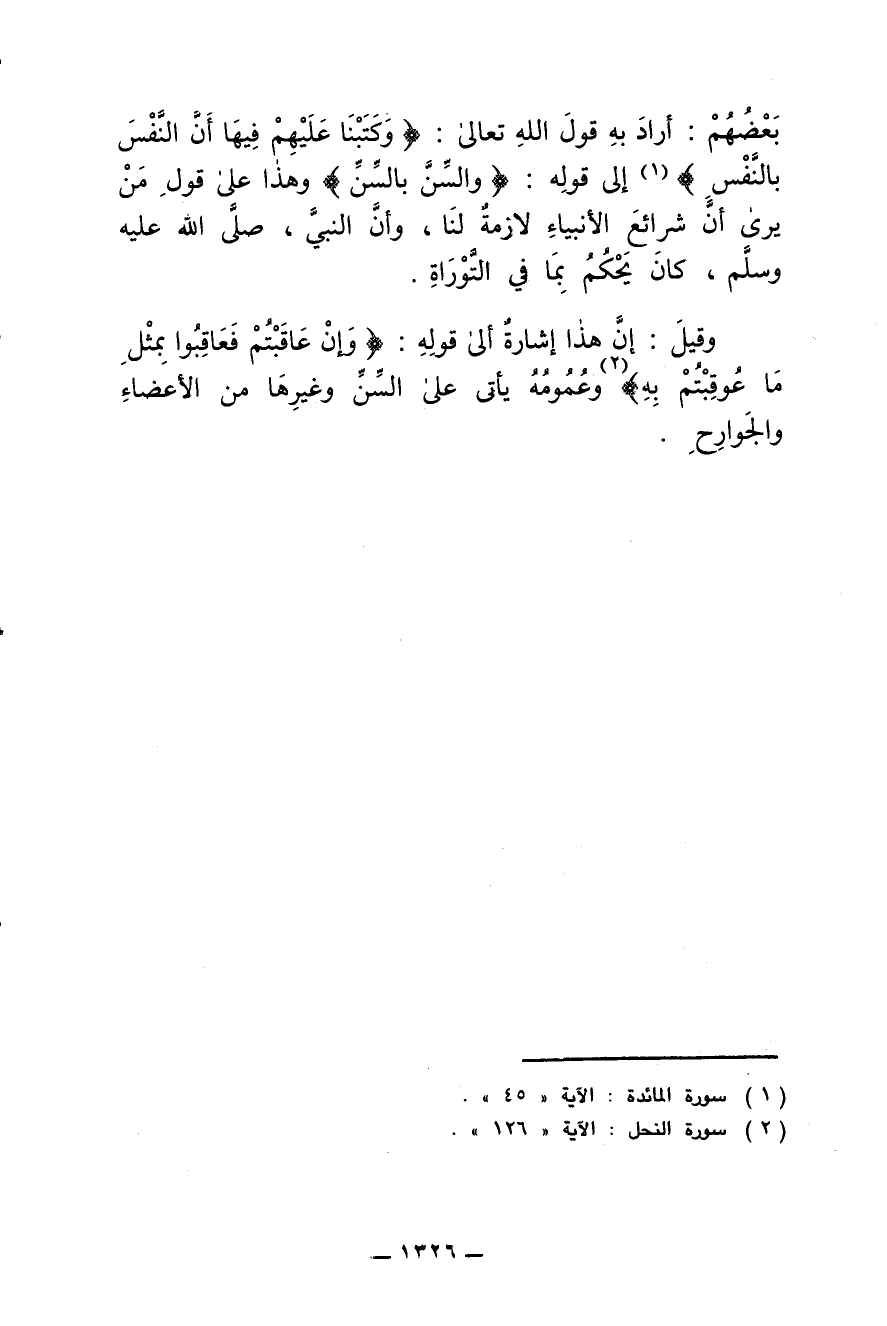وقيل: إن هذا إشارة إلى قوله: {وإن عاقبتم فعاقبوا بمثل ما عوقبتم به} وعمومه يأتي على السن وغيرها من الأعضاء والجوارح.