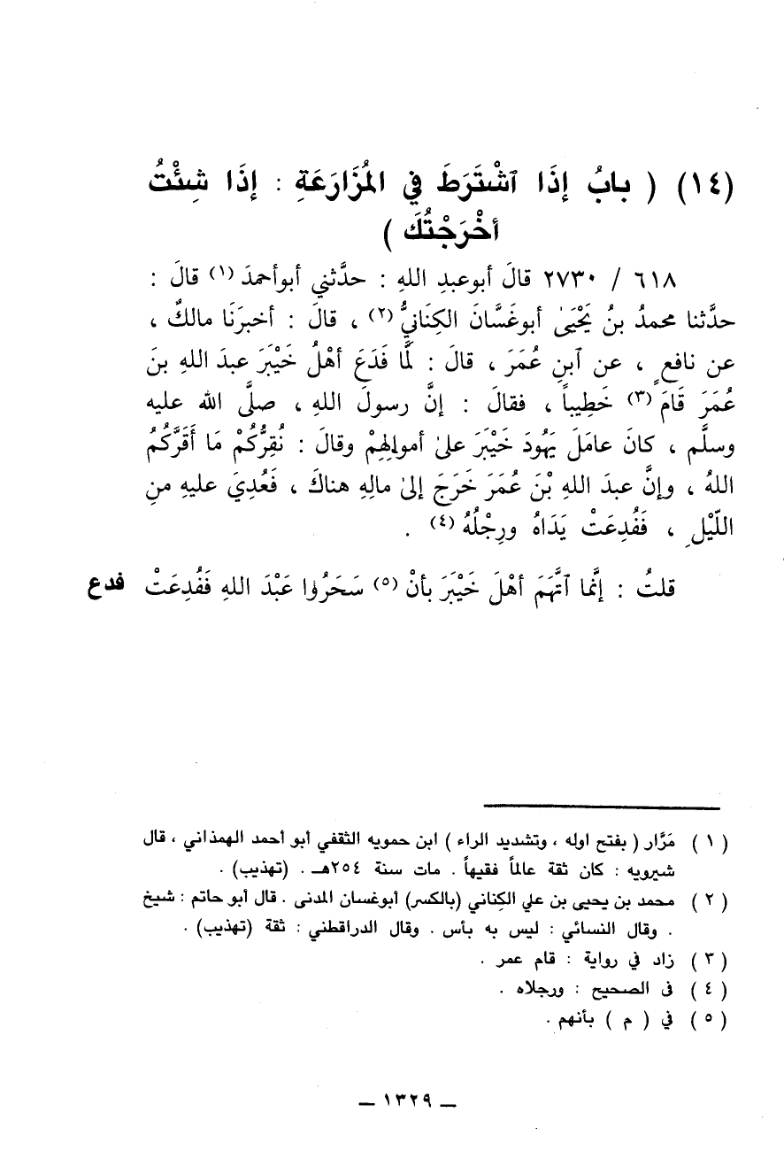 (14) (باب إذا اشترط في المزارعة: إذا شئت أخرجتك)