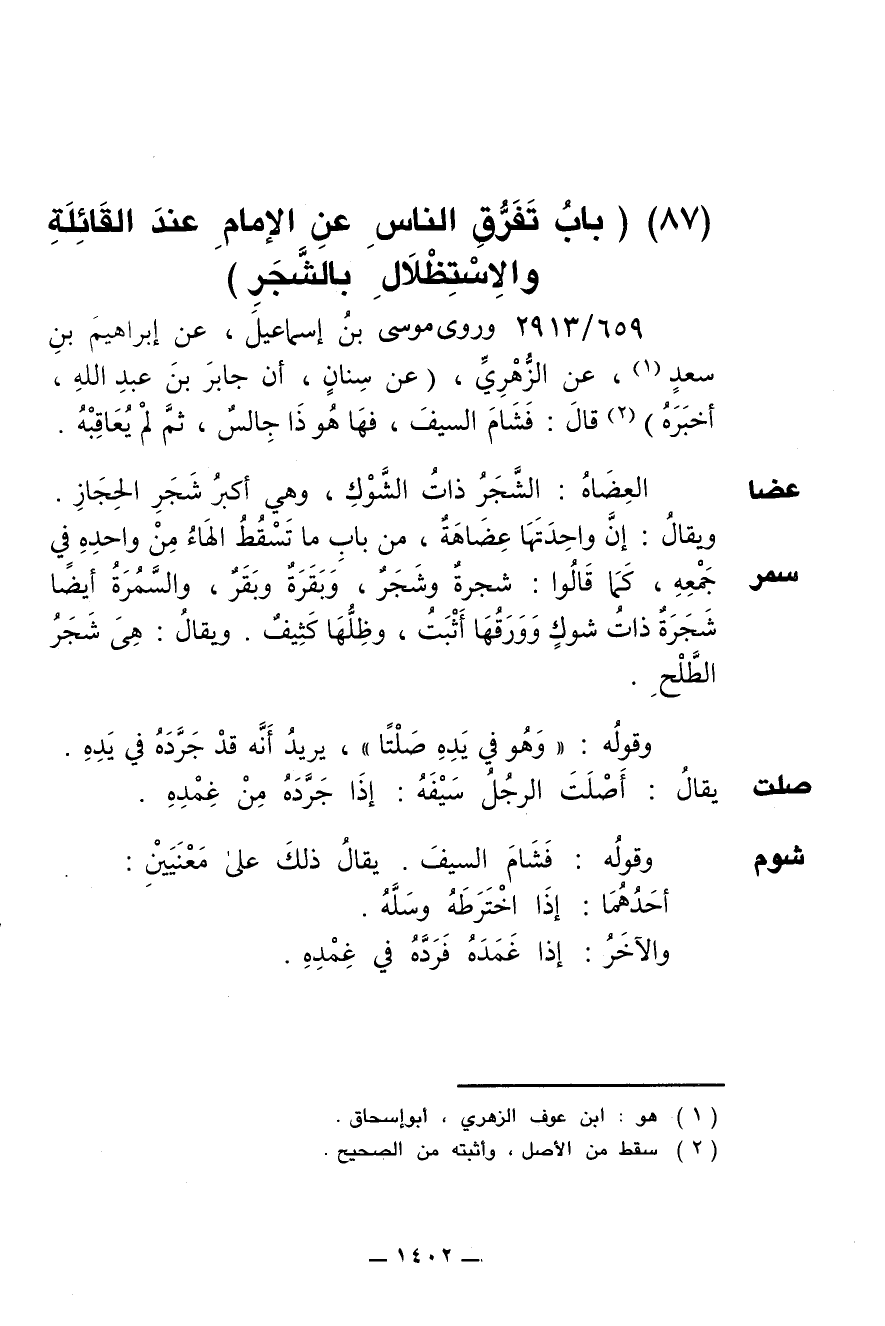 (87) (باب تفرق الناس عن الإمام عند القائلة والاستظلال بالشجر)