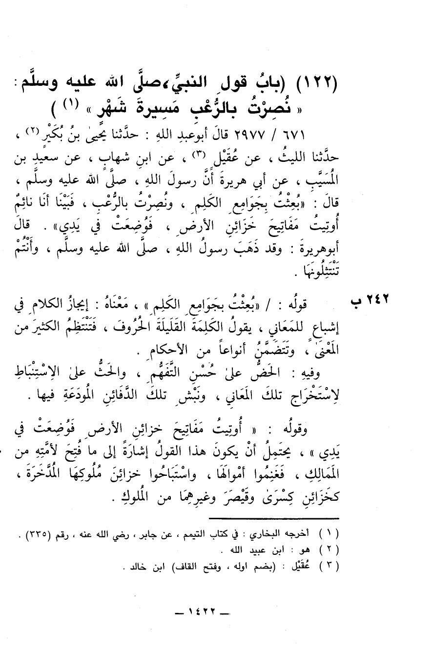 (122) (باب قول النبي، صلى الله عليه وسلم: نصرت بالرعب مسيرة شهر)