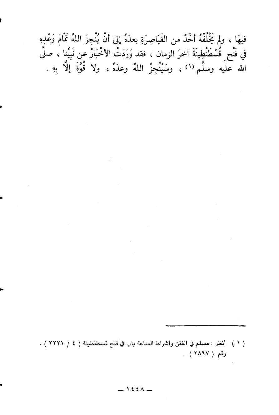 فيها، ولم يخلفه أحد من القياصرة بعده إلى أن ينجز الله تمام وعده في فتح قسطنطينة آخر الزمان، فقد وردت الأخبار عن نبينا، صلى الله عليه وسلم، وسينجز الله وعده، ولا قوة إلا به.