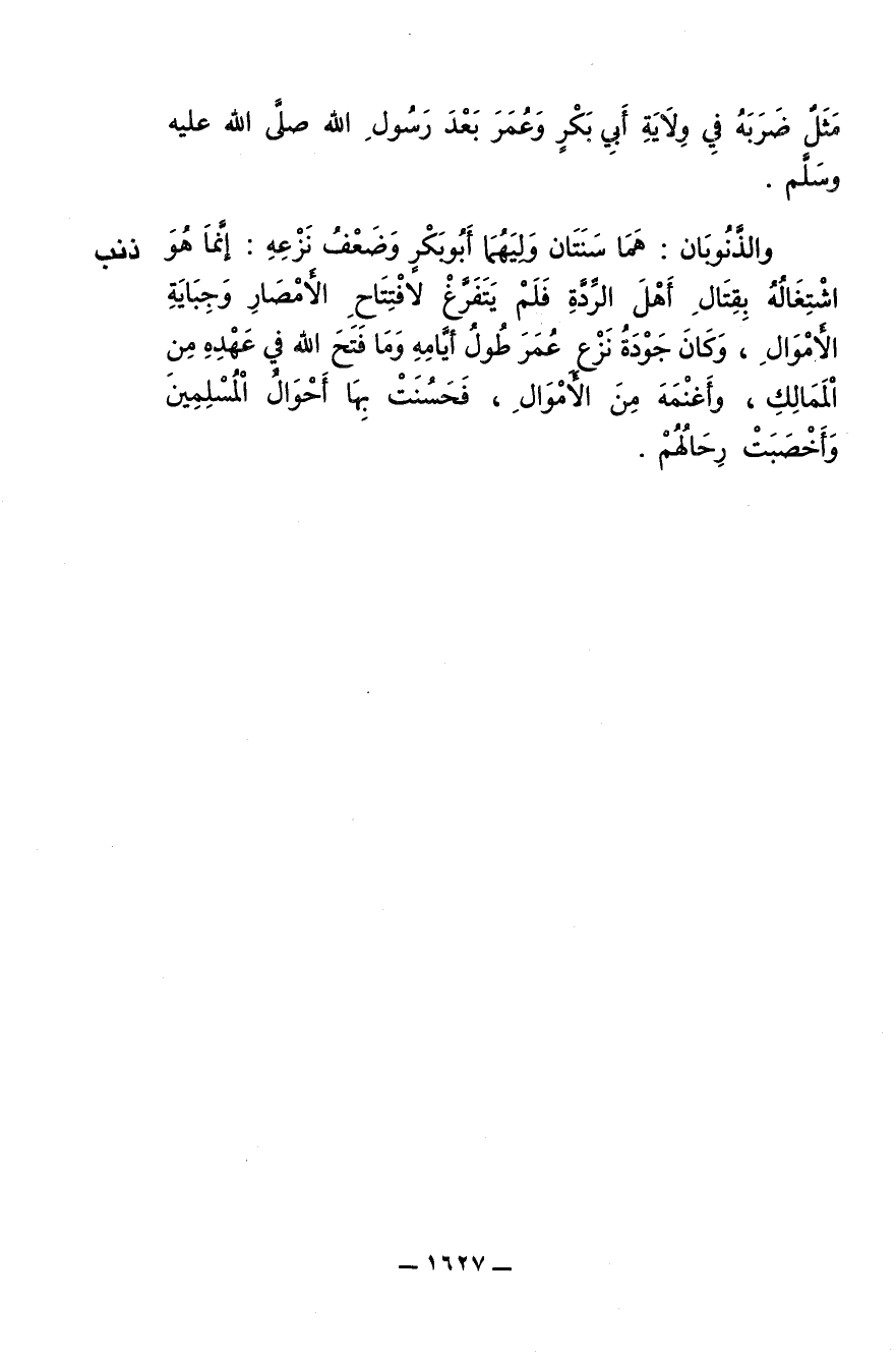 مثل ضربهُ في ولاية أبي بكر وعمر بعد رسول الله صلى الله عليه وسلم.