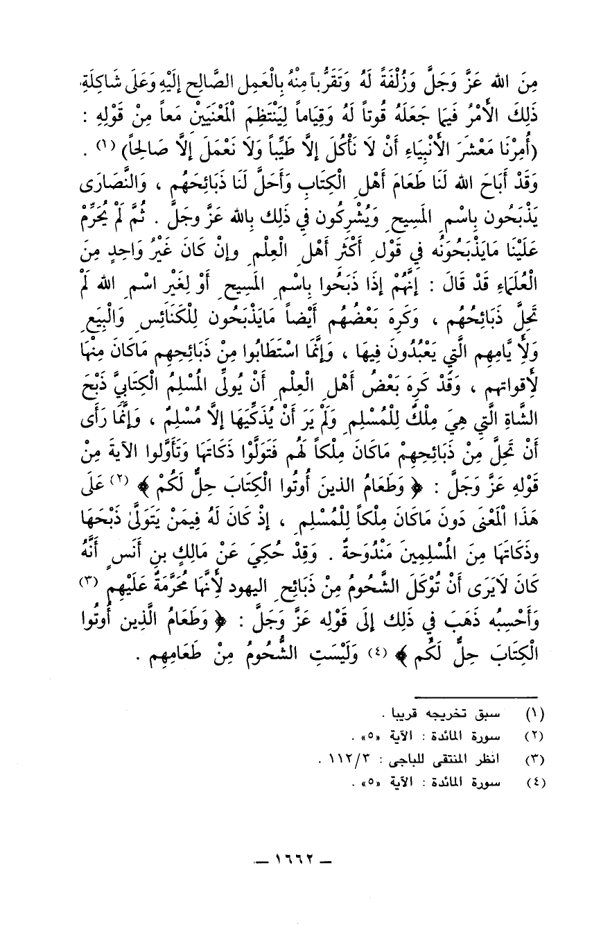 وقد أباح الله لنا طعام أهل الكتاب وأحل لنا ذبائحهم، والنصارى يذبحون باسم المسيح ويشركون في ذلك بالله عز وجل. ثم لم يحرم علينا ما يذبحونه في قول أكثر أهل العلم وأن كان غير واحد من العلماء قد قال: إنهم إذا ذبحوا باسم المسيح أو لغير اسم الله لم تحل ذبائحهم، وكره بعضهم أيضا ما يذبحون للكنائس والبيع ولأيامهم التي يعبدون فيها، وإنما استطابوا من ذبائحهم ما كان منها لأقواتهم، وقد كره بعض أهل العلم أن يولي المسلم الكتابي ذبح الشاة التي هي ملك للمسلم ولم ير أن يذكيها إلا مسلم، وإنما رأى أن تحل ذبائحهم ما كان ملكا لهم فتولوا ذكاتها وتأولوا الآية من قوله عز وجل: {وطعام الذين أوتوا الكتاب حل لكم} على هذا المعنى دون ما كان ملكا للمسلم، إذا كان له فيمن يتولى ذبحها وذكاتها من المسلمين مندوحة. وقد حكي عن مالك بن أنس أنه كان لا يرى أن تؤكل الشحوم من ذبائح اليهود لأنها محرمة عليهم وأحسبه ذهب في ذلك إلى قوله عز وجل: {وطعام الذين أوتوا الكتاب حل لكم} وليست الشحوم من طعامهم.