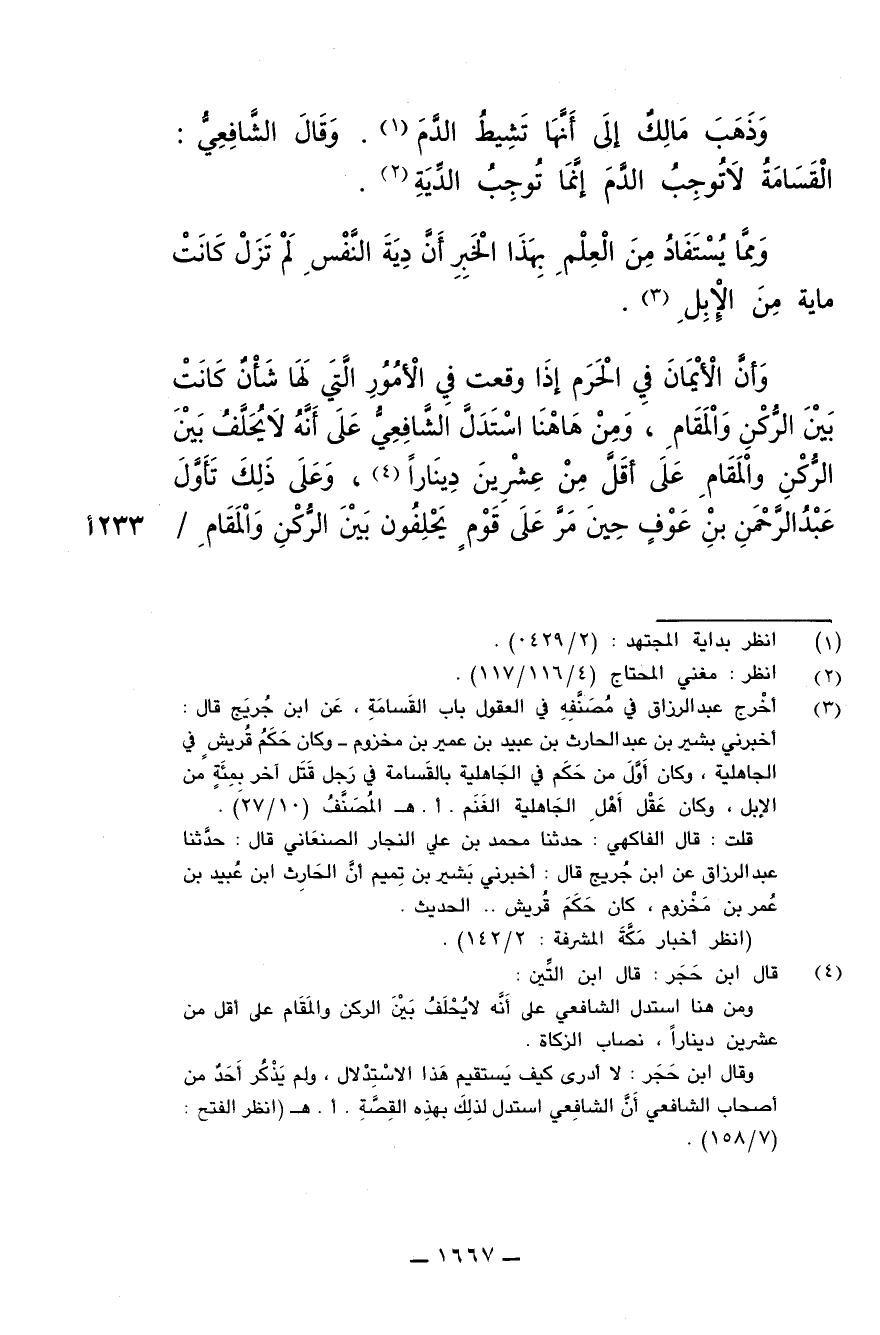 وأن الأيمان في الحرم إذا وقعت في الأمور التي لها شأن كانت بين الركن والمقام، ومن هاهنا استدل الشافعي على أنه لا يحلف بين الركن والمقام على أقل من عشرين دينارا، وعلى ذلك تأول عبد الرحمن بن عوف حين مر على قوم يحلفون بين الركن والمقام /