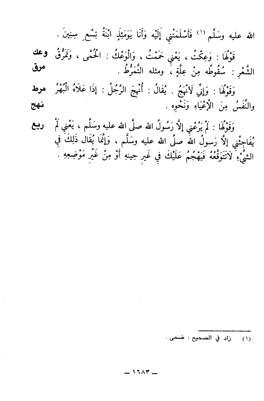 وقولها: وإني لأنهج. يقال: أنهج الرجل: إذا علاه البهر والنفس من الإعياء ونحوه.
