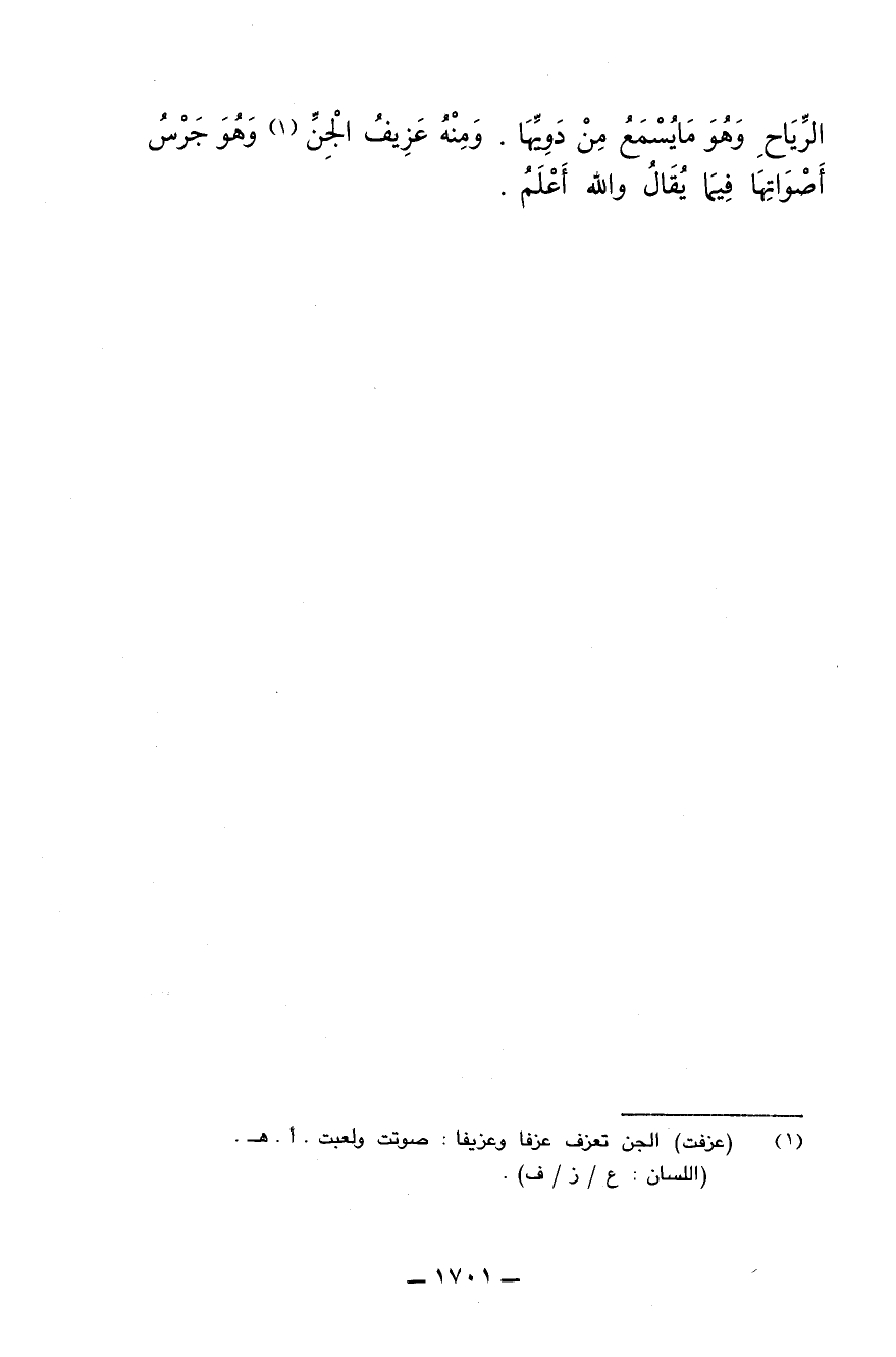 الرياح وهو ما يسمع من دويها. ومنه عزيف الجن وهو جرس أصواتها فيما يقال والله أعلم.