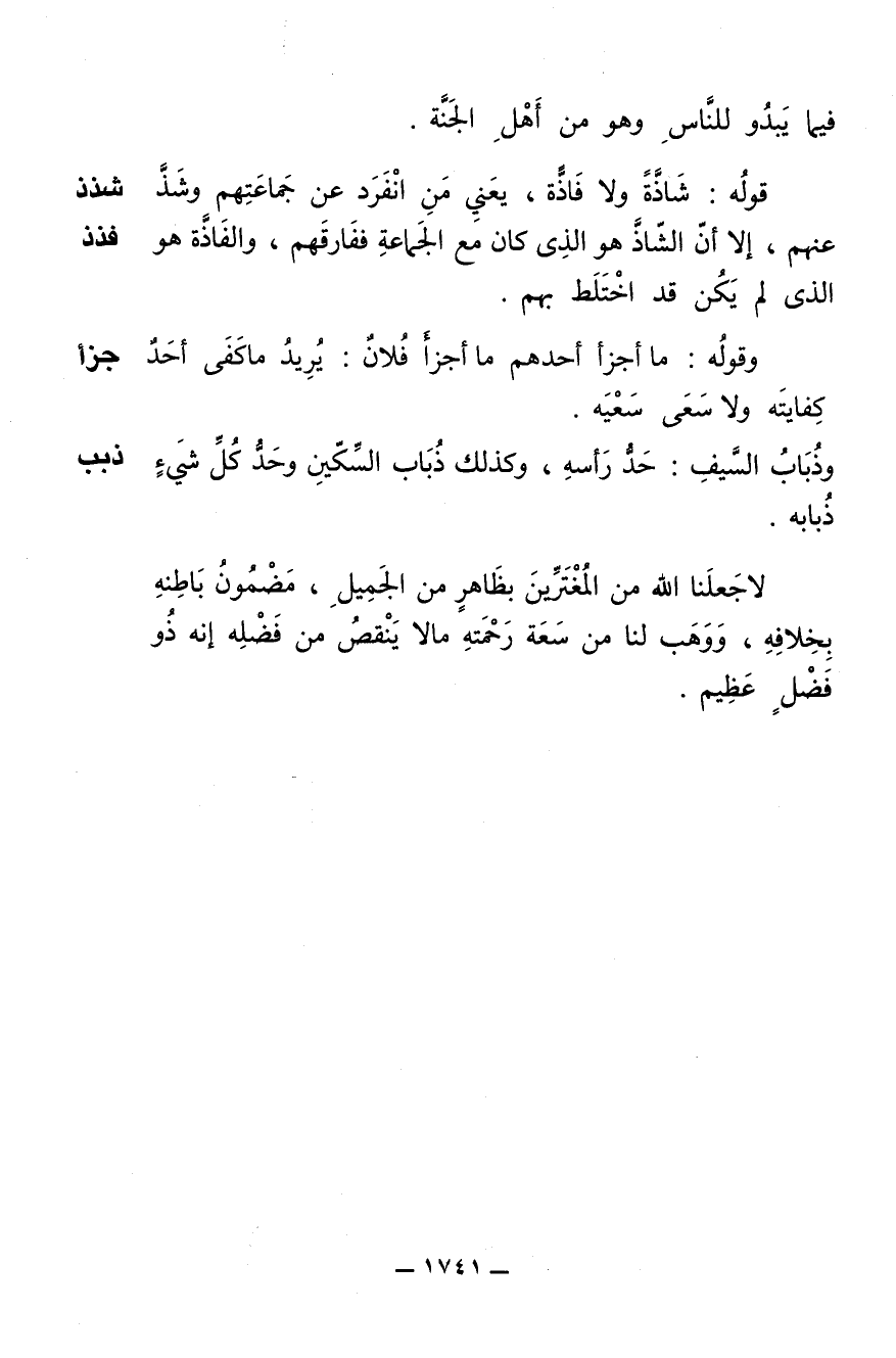 قوله: شاذة ولا فاذة يعني من انفرد عن جماعتهم وشذ عنهم، إلا أن الشاذ هو الذي كان مع الجماعة ففارقهم، والفاذة هو الذي لم يكن قد اختلط بهم.