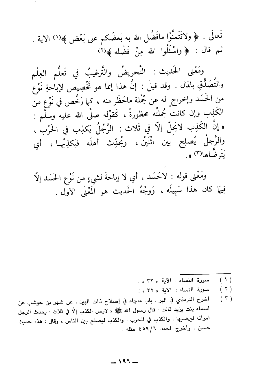 تعالى: {ولا تتمنوا ما فضل الله به بعضكم على بعض} الآية. ثم قال: {واسئلوا الله من فضله}.