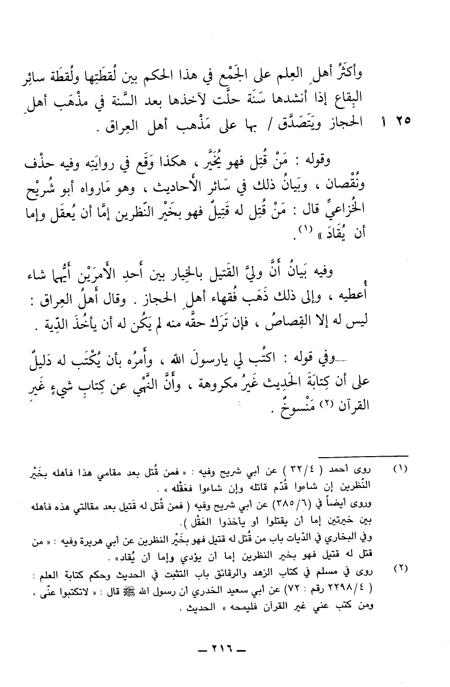 وقوله: من قتل فهو يخير، هكذا وقع في روايته وفيه حذف ونقصان، وبيان ذلك في سائر الأحاديث، وهو ما رواه أبو شريح الخزاعي قال: من قتل له قتيل فهو بخير النظرين إما أن يعقل وإما أن يقاد).