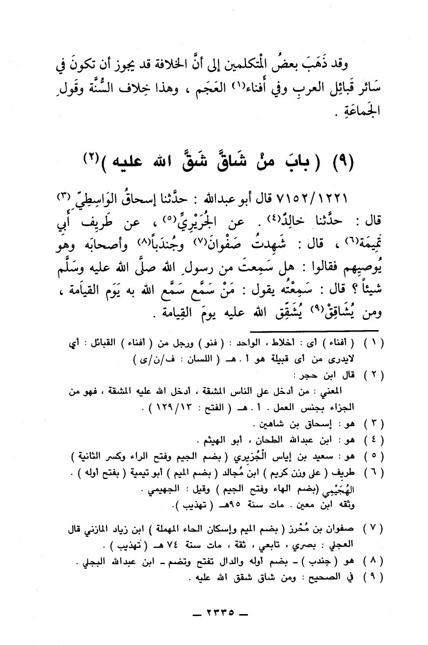(9) (باب من شاقَّ الله شقَّ الله عليه)