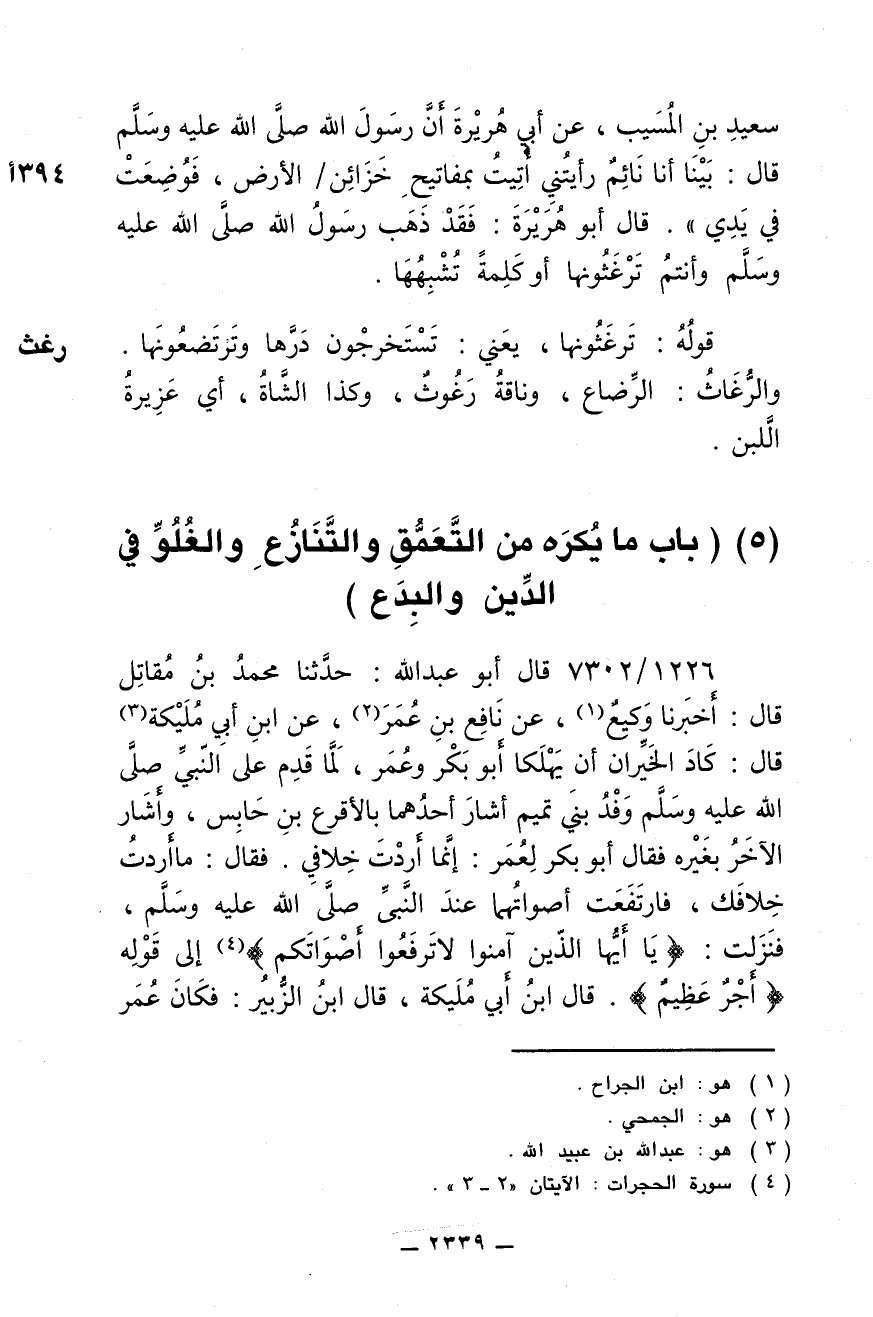 (5) (باب ما يكره من التعَمُّق والتنازع والغلو في الدين والبدع)