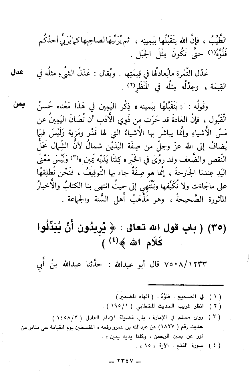(35) (باب قول الله تعالى (يُرِيدُونَ أَن يُبَدِّلُوا كَلَامَ اللَّهِ))