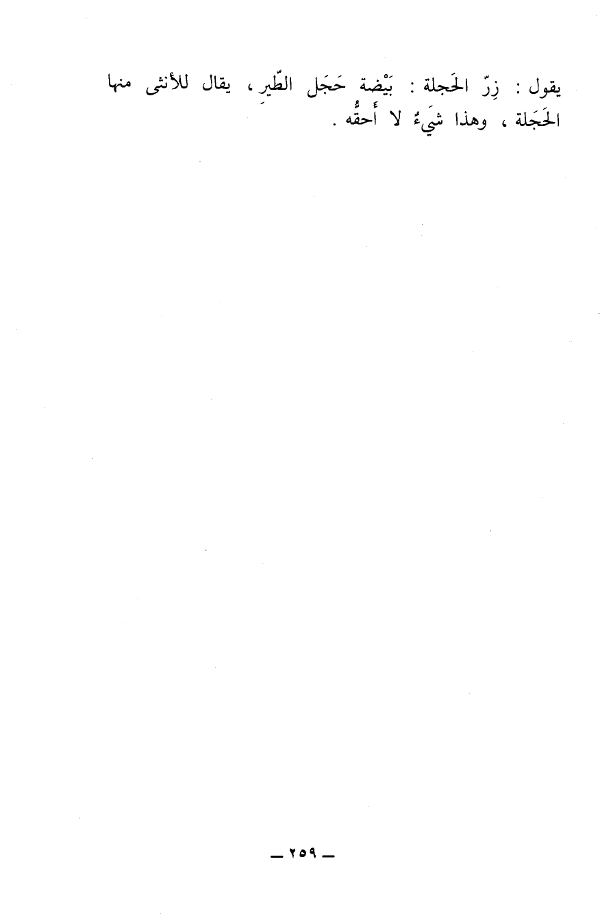 يقول: زر الحجلة: بيضة حجل الطير، يقال للأنثى منها الحجلة، وهذا شيء لا أحقه.