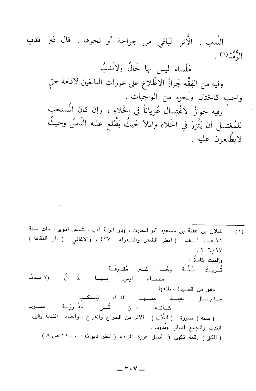 الندب: الأثر الباقي من جراحة أو نحوها. قال ذو الرمة: