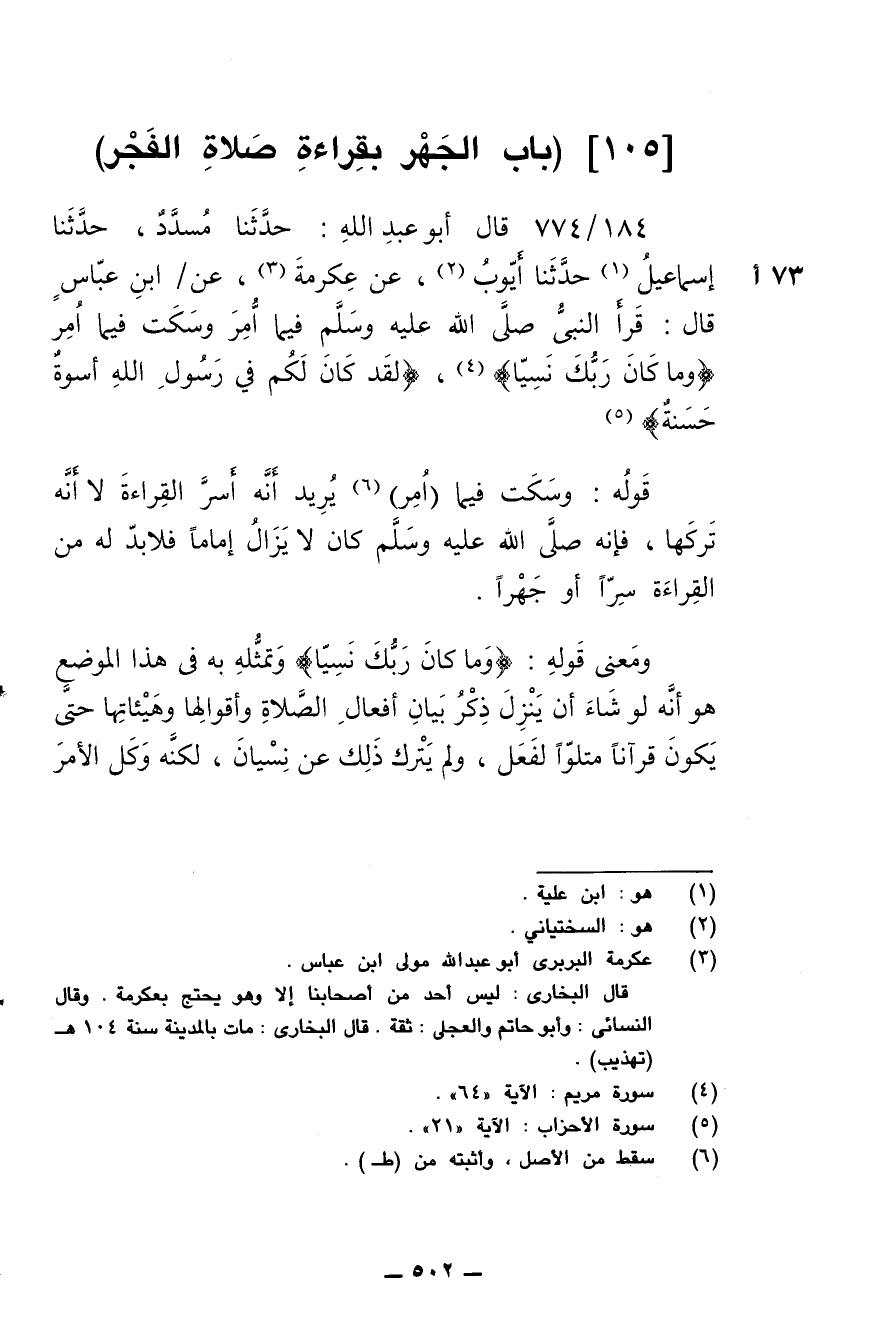 [105] (باب الجهر بقراءة صلاة الفجر)