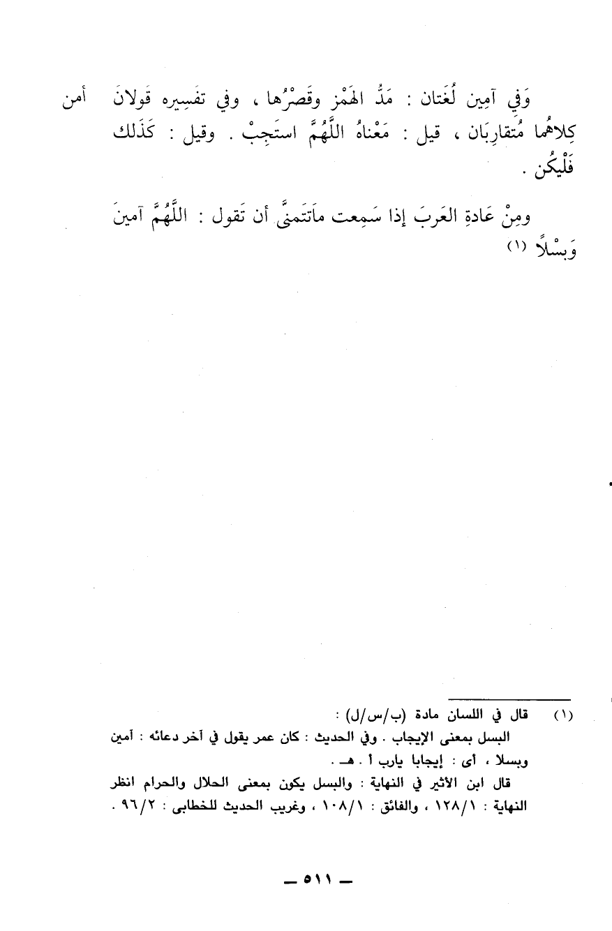 ومن عادة العرب إذا سمعت ما تتمنى أن تقول: اللهم آمين وبَسْلًا.