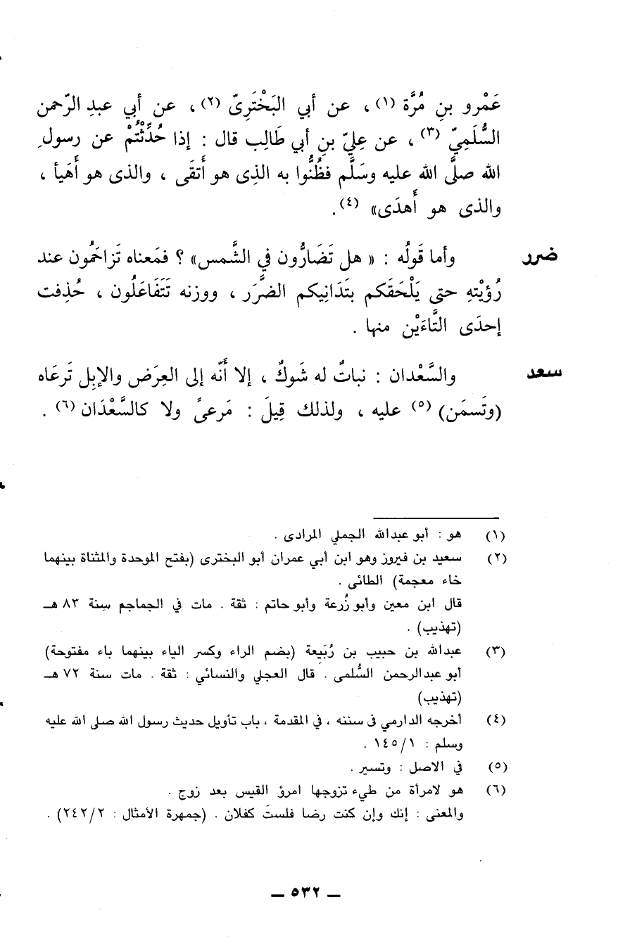 عمرو بن مرة، عن أبي البختري، عن أبي عبد الرحمن السلمي، عن علي بن أبي طالب قال: إذا حدثتم عن رسول الله صلى الله عليه وسلم فظنوا به الذي هو أتقى، والذي هو أهيأ، والذي هو أهدى.