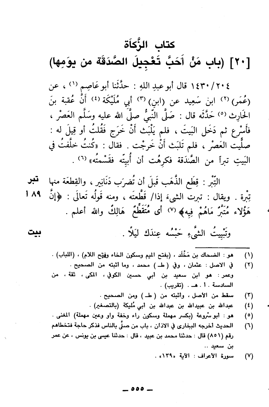 [20] (باب من أحب تعجيل الصدقة من يومها)