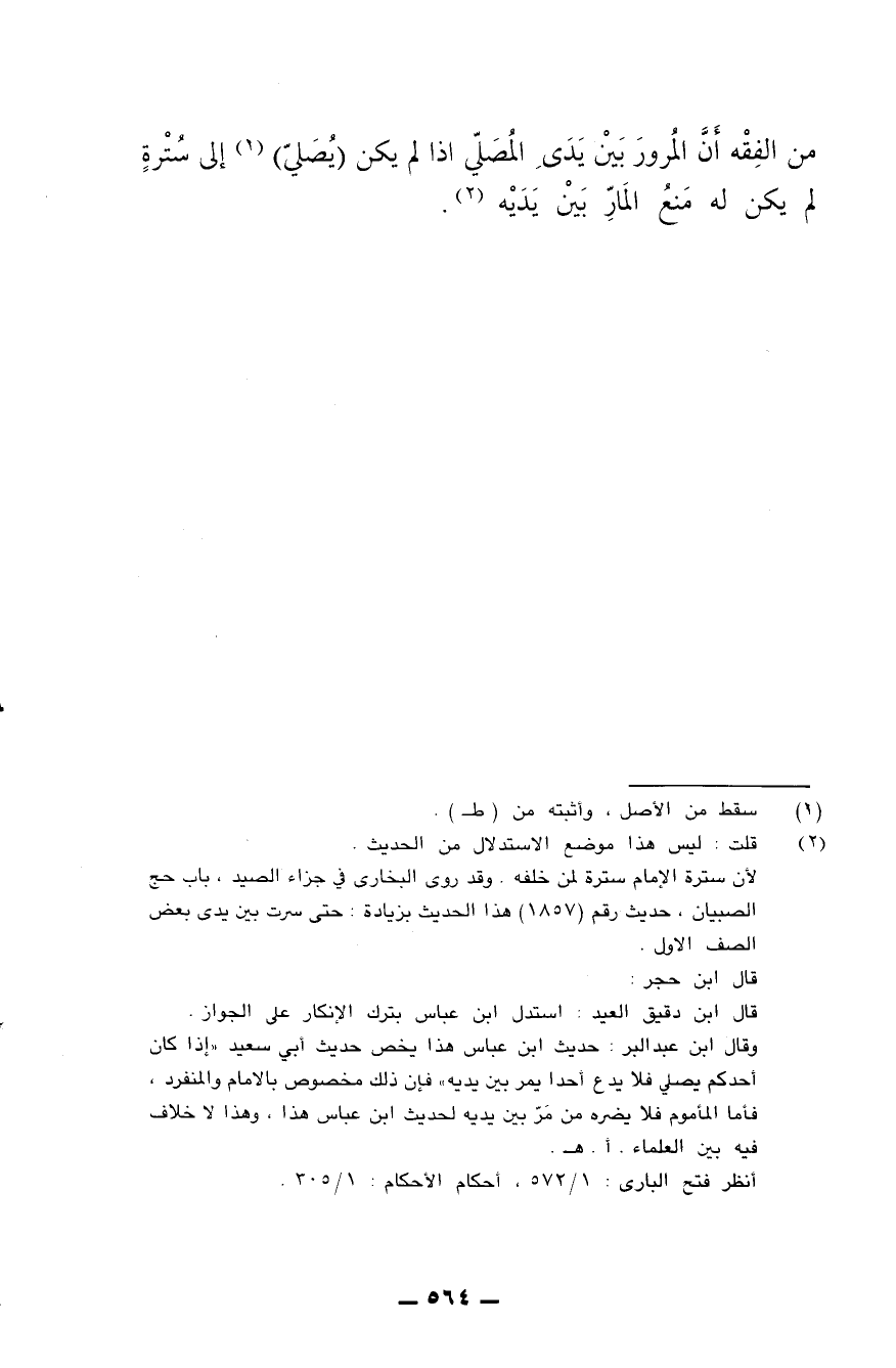 من الفقه أن المرور بين يدي المصلي إذا لم يكن (يصلي) إلى سترة لم يكن له منع المار بين يديه.