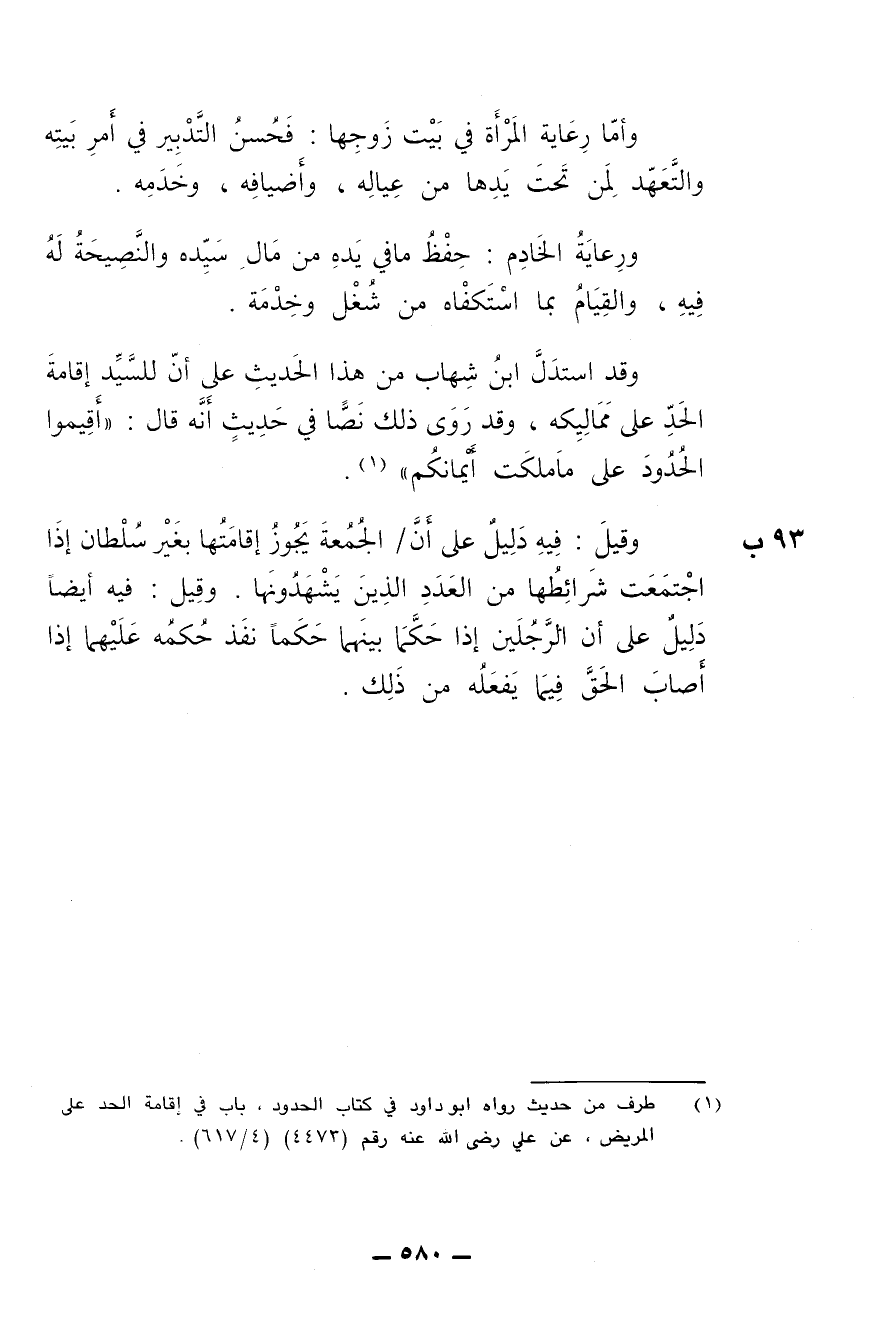 وقد استدل ابن شهاب من هذا الحديث على أن للسيد إقامة الحد على مماليكه، وقد روي ذلك نصا في حديث أنه قال: (أقيموا الحدود على ما ملكت أيمانكم).