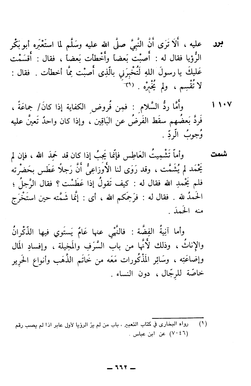 وأما تشميت العاطس فإنما يجب إذا كان قد حمد الله، فإن لم يحمد لم يشمت، وقد روى لنا الأوزاعي أن رجلا عطس بحضرته فلم يحمد الله، فقال له: كيف تقول إذا عطست؟ فقال الرجل: الحمد الله، فقال له: فرحمكم الله، أي: إنما شمته حين استخرج منه الحمد.