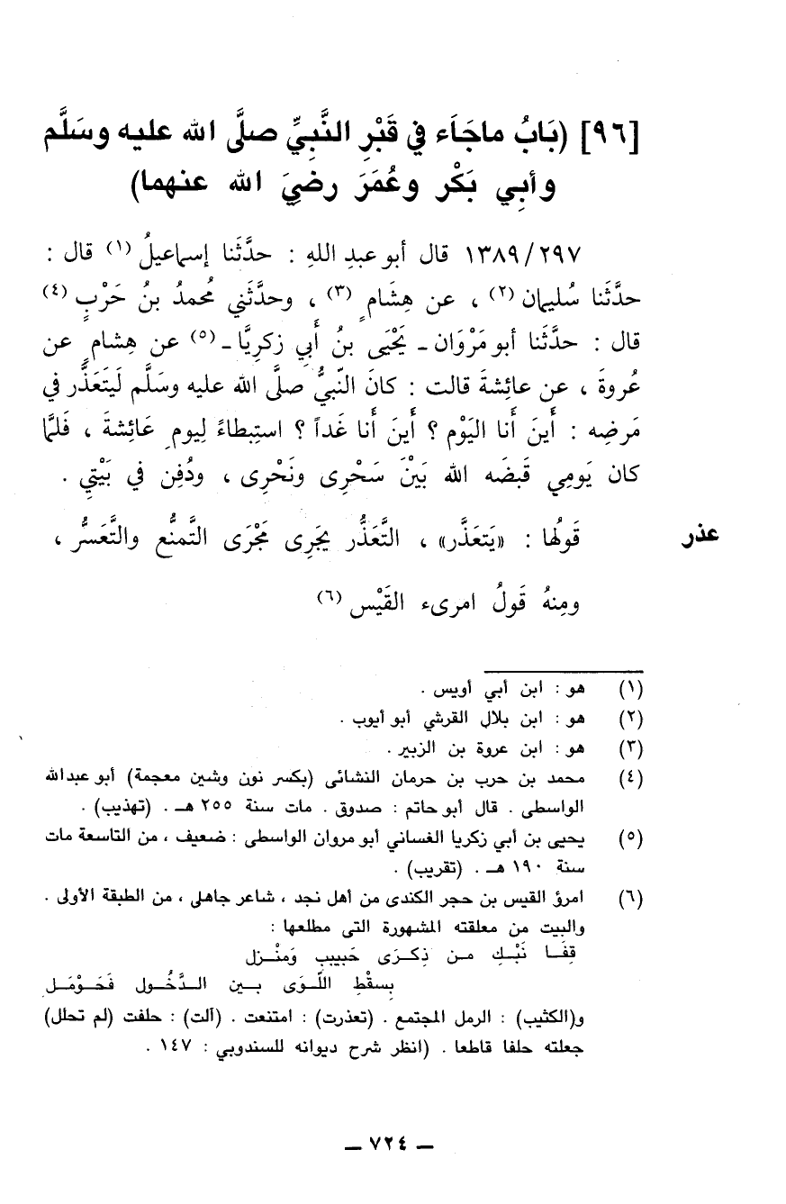 [96] (باب ما جاء في قبر النبي صلى الله عليه وسلم وأبي بكر وعمر رضي الله عنهما)