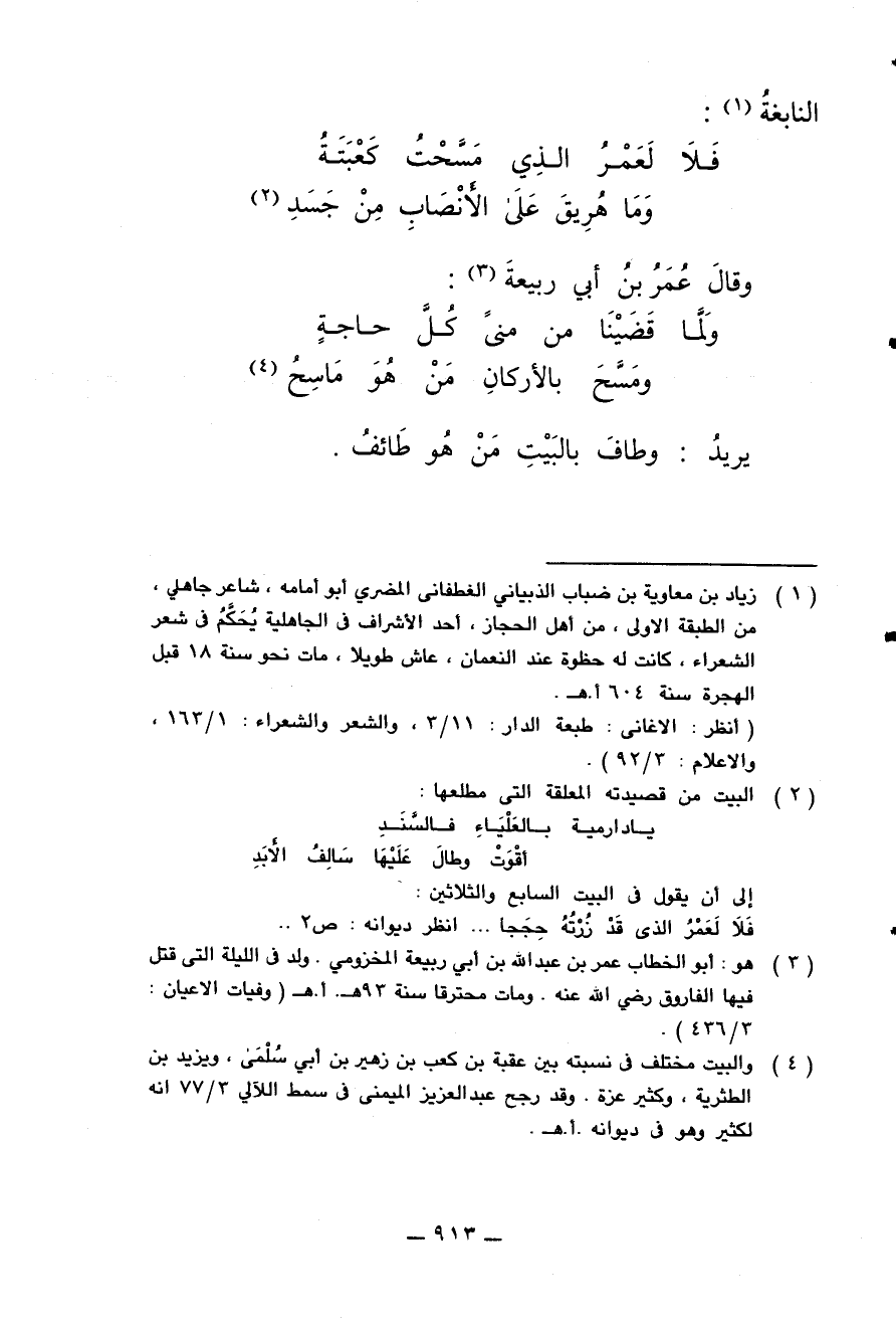 فلا لعمر الذي مسحت كعبته .... وما هريق على الأنصاب من جسد