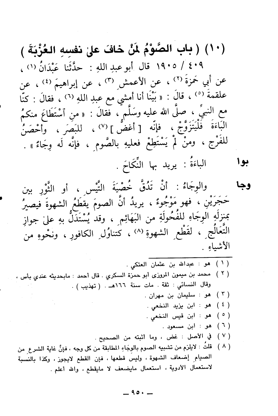 (10) (باب الصوم لمن خاف على نفسه العزبة)