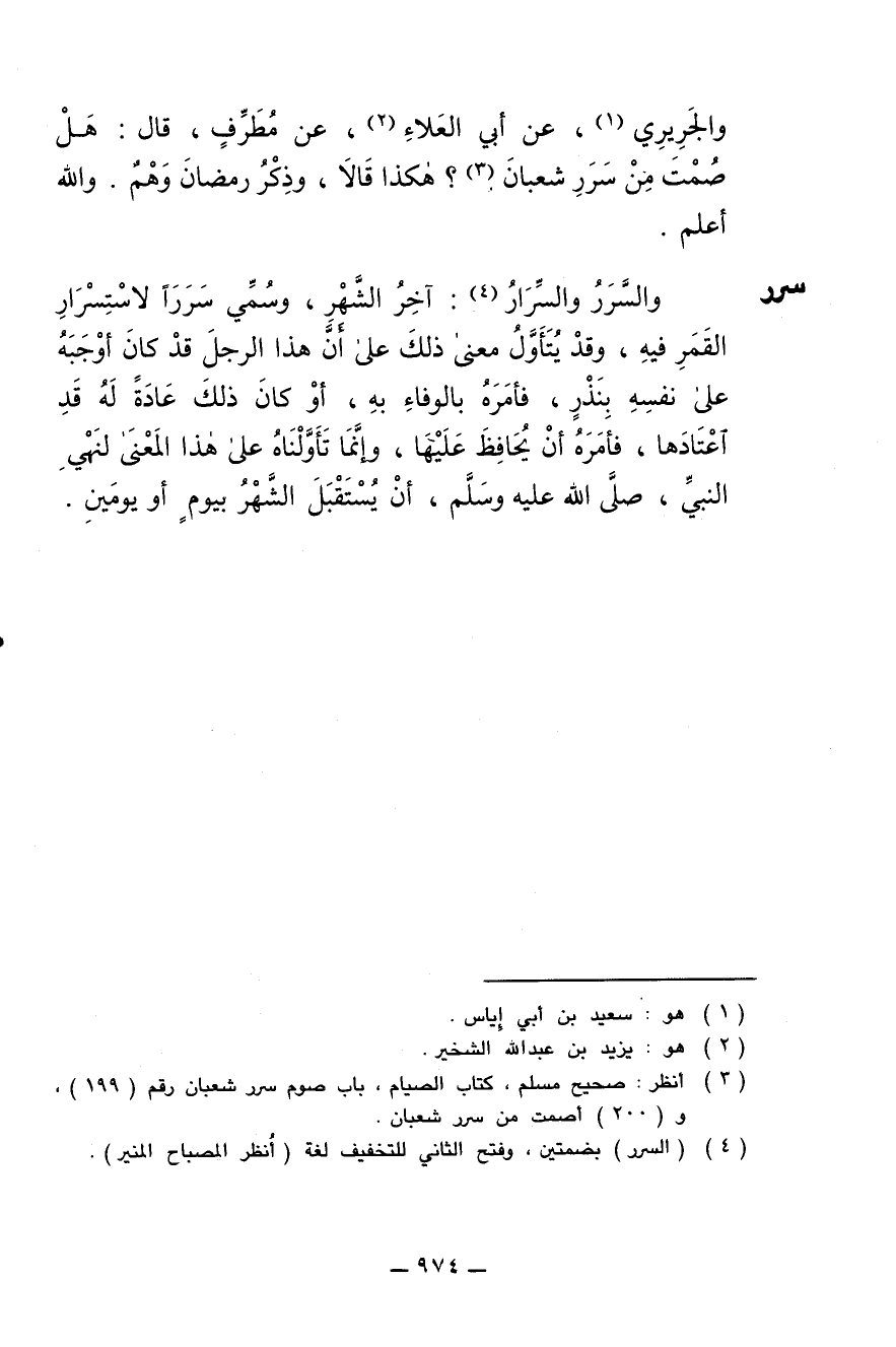 والجريري، عن أبي العلاء، عن مطرف، قال: هل صمت من سرر شعبان؟ هكذا قالا، وذكر رمضان وهم. والله أعلم.