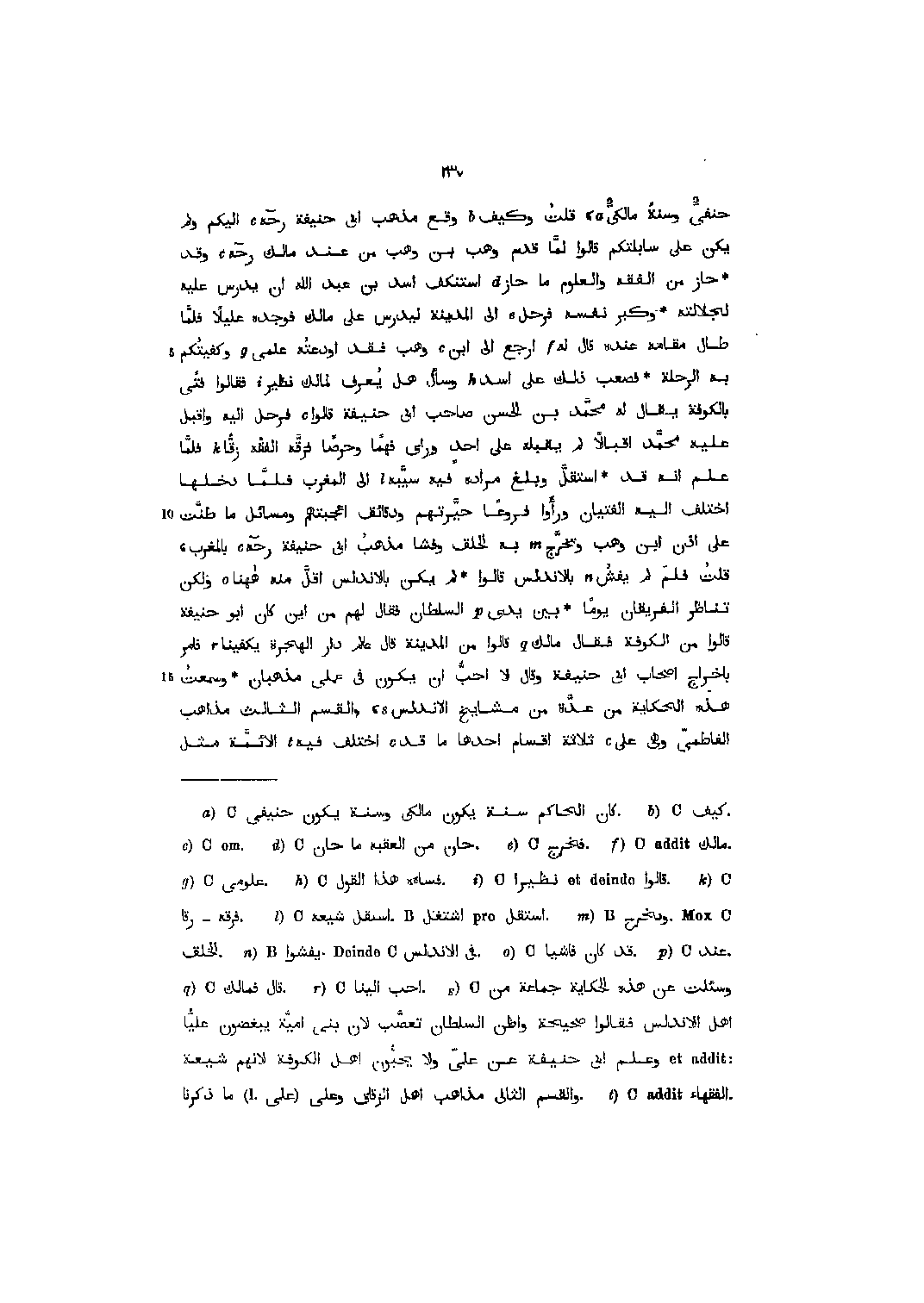 [18] وسئلت عن هذه الحكاية جماعة من C أهل الأندلس فقالوا صحيحة وأظن السلطان تعصّب لان بنى أميّة يبغضون عليّا etaddit:وعلم ابى حنيفة عن عليّ ولا يحبّون أهل الكوفة لانهم شيعة. والقسم الثاني مذاهب أهل الزقاق وعلى (على (l.ما ذكرنا
