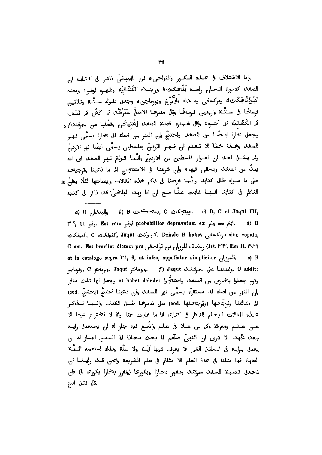 .Caddit: [6] وفضلها على سمرقند Jaqut وقوم جعلوا بخارى من السغد واحتجّوا ethabetdeinde:وجعل لها ثلث منابر بان النهر من أصله الى مستقرّه يسمّى نهر السغد وان ذهبنا نحتجّ (يحتجّ (cod.الى مقالتنا ونرجّحها (و؟ يرجحنها (cod.؟ على غيرها طال الكتاب وانما نذكر هذه المقالات ليعلم الناظر في كتابنا انا ما غابت عنا وانا لا نخترع شيئا الا عن علم ومعرفة وكل من علا في علم واتّسع فيه جاز له ان يستعمل رايه بعد الجهد الا ترى ان النبيّ صلى الله عليه وسلم لما بعث معاذا الى اليمن أجاز له ان يعمل برأيه في المسائل التي لا يعرف فيها آية ولا سنّة وذلك استعمله ائمّة الفقهاء فما مثلنا في هذا العلم الا مثلهم في علم الشريعة ونحن قد رأينا ان نجعل قصبة السغد سمرقند ويغور؟ بحارا؟ وبكورها (ونفرز بخارا بكورها (l.فان. قال قائل إلخ