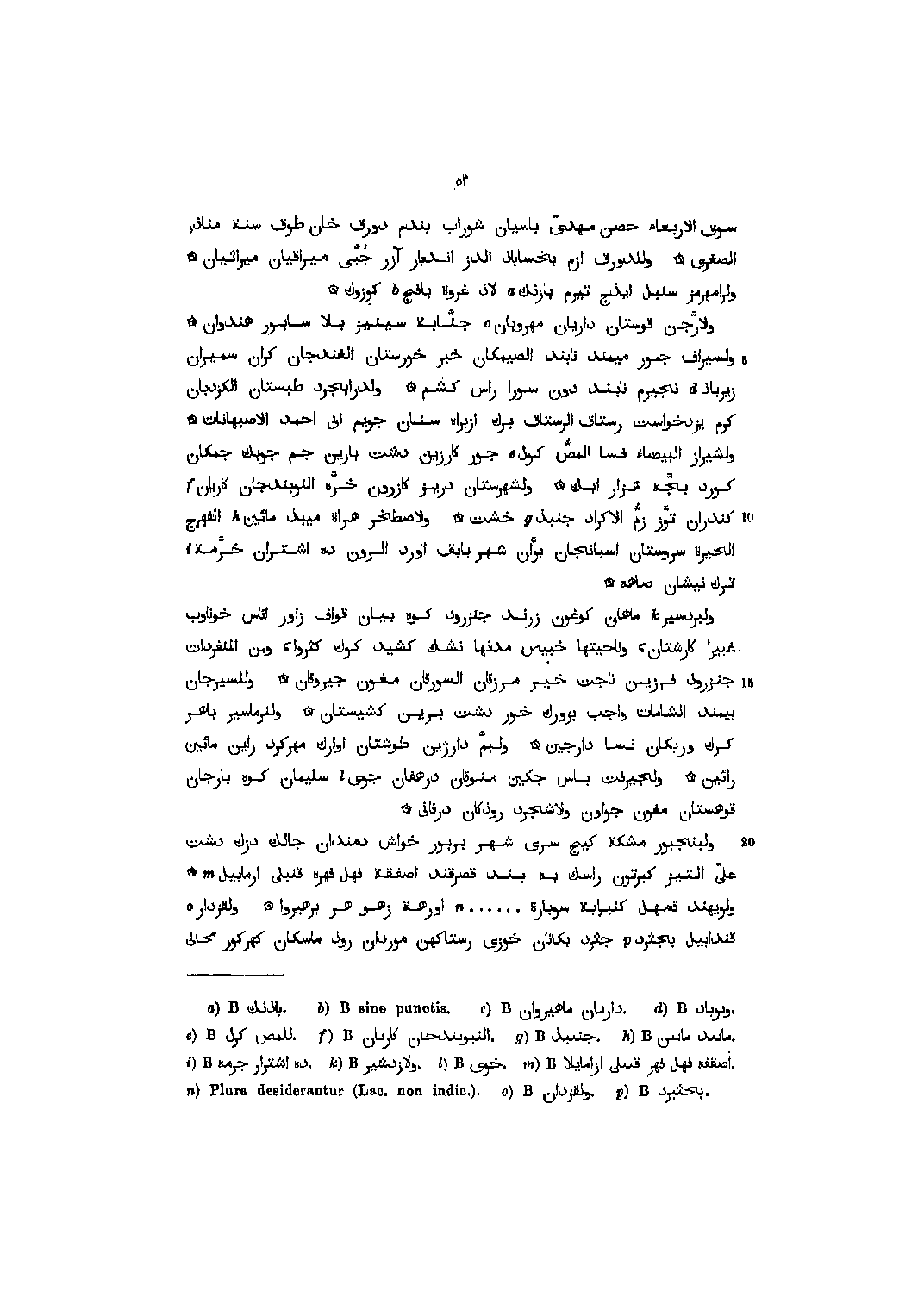 سوق الأربعاء حصن مهدىّ باسيان شوراب بندم دورق خان طوق سنة مناذر الصغرى وللدورق أزم بخساباذ الدز اندبار آزر جبّى ميراقيان ميراثيان ولرامهرمز سنبل ايذج تيرم بزنك [1] لاذ غروة بافج [2] كوزوك ولارّجان قوستان داريان مهروبان [3] جنّابة سينيز بلا سابور هندوان 5 ولسيراف جنور ميمند نابند الصيمكان خبر خوزستان الغندجان كران سميران زيرباذ [4] نجيرم نابند دون سورا راس كشم ولدرابجرد طبستان الكردبان كرم يزدخواست رستاق الرستاق برك ازبراه سنان جويم ابى احمد الاصبهانات ولشيراز البيضاء فسا المصّ كول [5] جور كارزين دشت بارين جم جوبك جمكان كورد بجّه هزارابك ولشهرستان دريز كازرون خرّه النوبندجان كاريان [6] 10 كندران توّز زمّ الأكراد جنبذ [7] خشت ولاصطخر هراة ميبذ ماءين [8] الفهرج الحيرة سروستان اسبانجان بوّان شهر بابق أورد الرون ده أشتران خرّمة [9] ترك نيشان صاهه ولبردسير [10] ماهان كوغون زرند جنرود كوه بيان قواف زاور أناس خوناوب غبيرا كارشتان، وناحيتها خبيص مدنها نشك كشيد كوك كثروا، ومن المنفردات 15 جنزروذ فرزين ناجت خير مرزقان السورقان مغون جيروقان وللسيرجان بيمند الشامات واجب بزورك خور دشت برين كشيستان ولنرماسير باهر كرك وريكان نسا دارجين ولبمّ دارژين طوشتان أوارك مهركرد راين ماءين رائين ولجيرفت باس جكين منوقان درهفان جوى [11] سليمان كوه بارجان قوهستان مغون جواون ولاشجرد روذكان درفانى 20 ولبنجبور مشكة كيج سرى شهر بربور خواش دمندان جالك دزك دشت عليّ التيز كبرتون راسك به بند قصرقند اصفقة فهل فهره قنبلى ارمابيل [12] ولويهند قامهل كناية سوبارة ... [13] اورهة زهو هر برهيروا ولقزدار [14] قندابيل بجثرد [15] جثرد بكانان خوزي رستاكهن موردان روذ ماسكان كهركور محالى