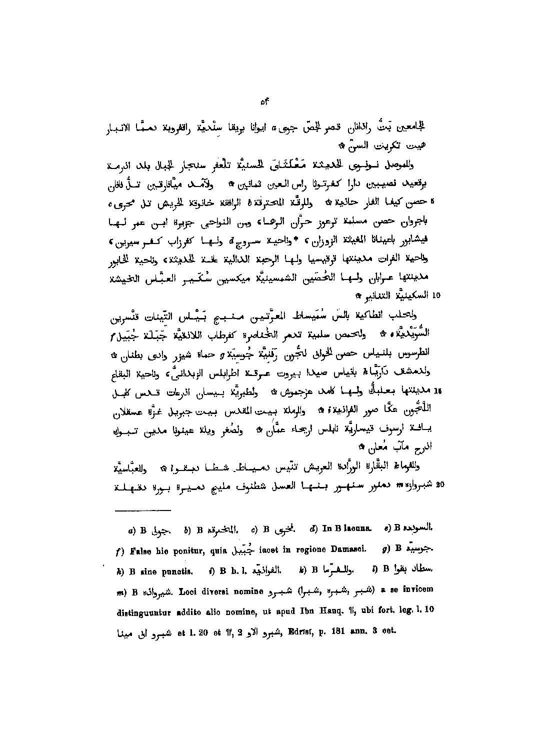 الجامعين بتّ راذانان. قصر الجصّ جوى [1] ايوانا بريقا سنديّة راقفروبة دممّا الأنبار هيت تكريت السنّ وللموصل نونوى الحديثة معلثاى الحسنيّة تلّعفر سنجار الجبال بلد اذرمة برقعيد نصيبين دارا كفرتوثا راس العين ثمانين ولآمد ميّافارقين تلّ فافان 5 حصن كيفا الفار حاذية وللرقّة المحترقة [2] الرافقة خانوقة الحريش تل محرى [3] باجروان حصن مسلمة ترعوز حرّان الرها، ومن النواحي جزيرة ابن عمر لها فيشابور باعيناثا المغيثة الزوزان، وناحية سروج [4] ولها كفرزاب كفر سيرين، وناحية الفرات مدينتها قرقيسيا ولها الرحبة الدالية عانة الحديثة، وناحية الخابور مدينتها عرابان ولها الحصين الشمسينيّة ميكسين سكير العبّاس الخيشة 10 السكينيّة التنانير ولحلب انطاكية بالس سميساط المعرّتين منبج بيّاس التّينات قنّسرين السّويديّة [5] ولحمص سلمية تدمر الخناصرة كفرطاب اللاذقيّة جبلة جبيل [6] انطرسوس بلنياس حصن الخوابي لجّون رفنيّة جوسية [7] حماة شيزر وادي بطنان ولدمشق داريّا [8] بانياس صيدا بيروت عرقة أطرابلس الزبدانىّ، وناحية البقاع 15 مدينتها بعلبكّ ولها كامد عرجموش ولطبريّة بيسان أذرعات قدس كابل اللّجّون عكّا صور الفراذية [9] وللرملة بيت المقدس بيت جبريل غزّة عسقلان يافة ارسوف قيساريّة نابلس اريحاء عمّان ولصغر ويلة عينونا مدين تبوك اذرح مآب معان وللفرما [10] البقّارة الورّادة العريش تنّيس دمياط شطا دبقوا [11] وللعبّاسيّة 20 شبروازه [12] دمنهور سنهور بنها العسل شطنوف مليج دميرة بورة دقهلة