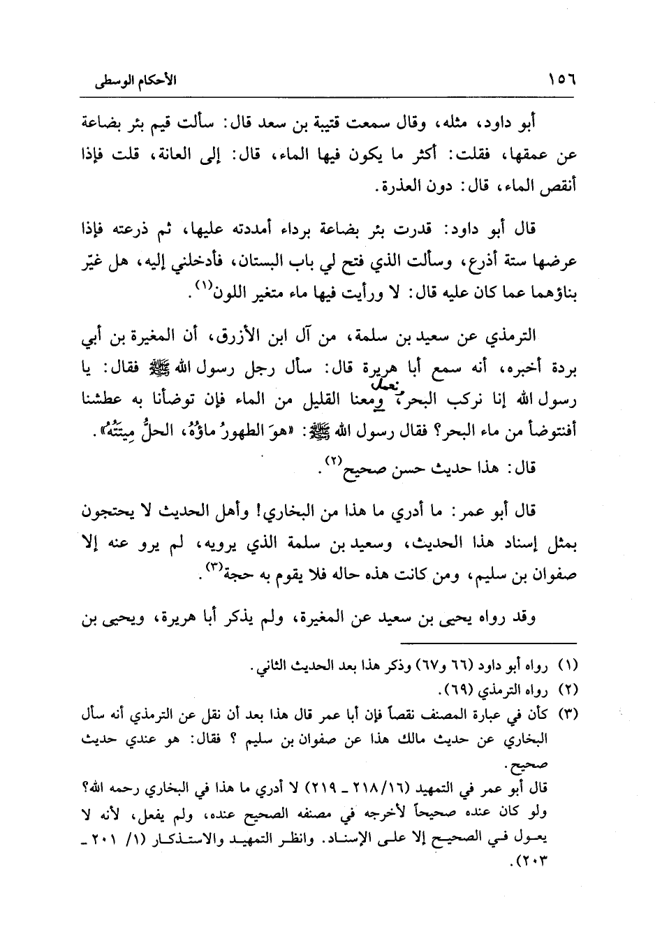 (¬3) كان في عبارة المصنف نقصًا فإن أبا عمر قال هذا بعد أن نقل عن الترمذي أنه سأل البخاري عن حديث مالك هذا عن صفوان بن سليم؟ فقال: هو عندي حديث صحيح.