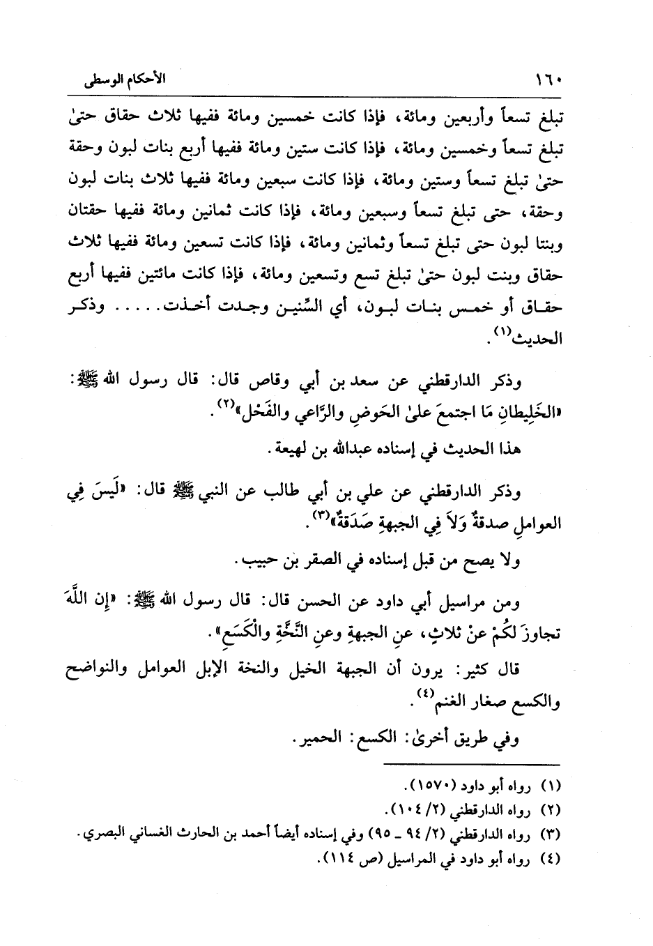 وذكر الدارقطني عن سعد بن أبي وقاص قال: قال رسول الله - صلى الله عليه وسلم -: "الخَلِيطانِ مَا اجتمعَ على الحَوضِ والرَّاعي والفَحْل" (¬2).