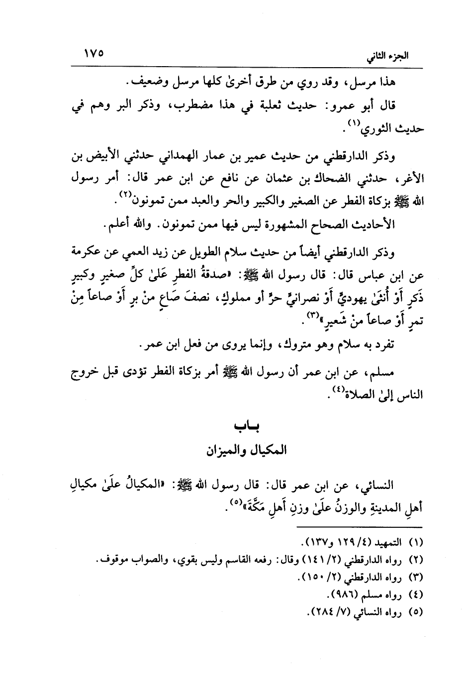 النسائي، عن ابن عمر قال: قال رسول الله - صلى الله عليه وسلم -: "المكيالُ علَى مكيالِ أهلِ المدينةِ والوزنُ علَى وزنِ أَهلِ مَكَّةَ" (¬5).