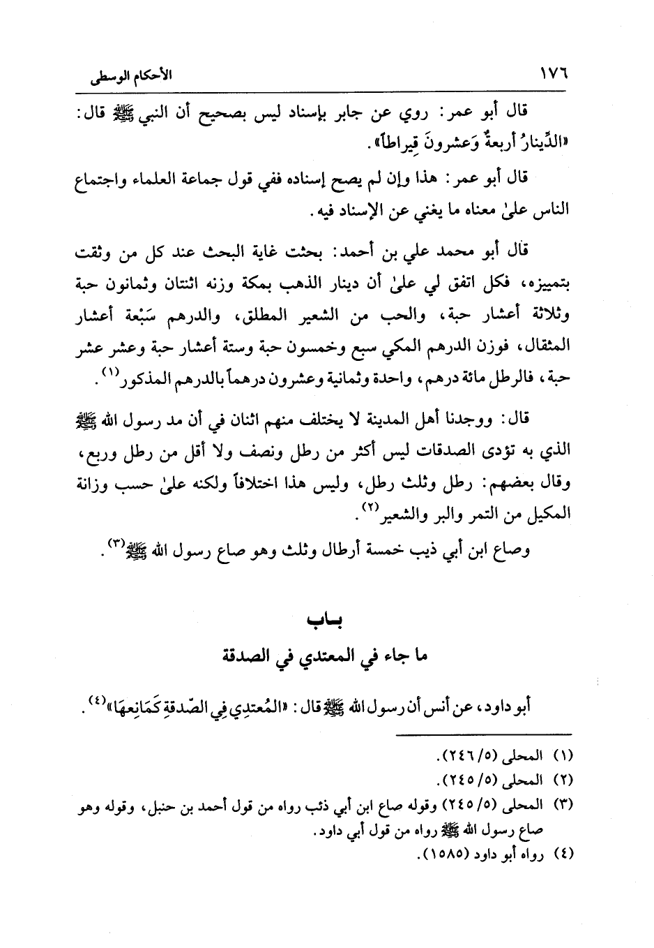 (¬3) المحلى (5/ 245) وقوله صاع ابن أبي ذئب رواه من قول أحمد بن حنبل، وقوله وهو صاع رسول الله - صلى الله عليه وسلم - رواه من قول أبي داود.