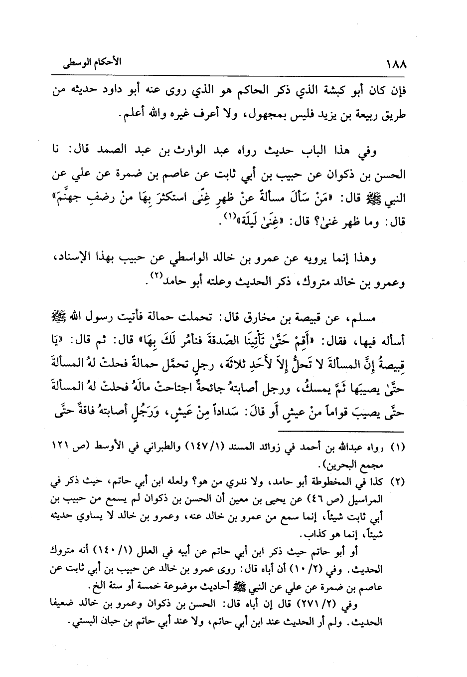 (¬2) كذا في المخطوطة أبو حامد، ولا ندري من هو؟ ولعله ابن أبي حاتم، حيث ذكر في المراسيل (ص 46) عن يحيى بن معين أن الحسن بن ذكوان لم يسمع من حبيب بن أبي ثابت شيئًا، إنما سمع من عمرو بن خالد عنه، وعمرو بن خالد لا يساوي حديثه شيئًا، إنما هو كذاب.