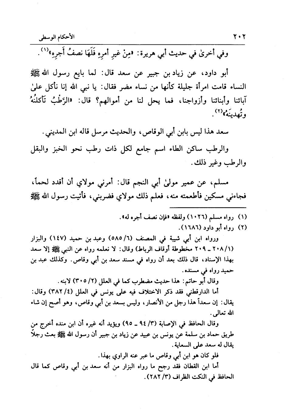 أبو داود، عن زياد بن جبير عن سعد قال: لما بايع رسول الله - صلى الله عليه وسلم - النساء قامت امرأة جليلة كأنها من نساء مضر فقال: يا نبي الله إنا نأكل على آبائنا وأبنائنا وأزواجنا، فما يحل لنا من أموالهم؟ قال: "الرَّطْبُ تَأكلنُهُ وتُهدينَهُ" (¬2).