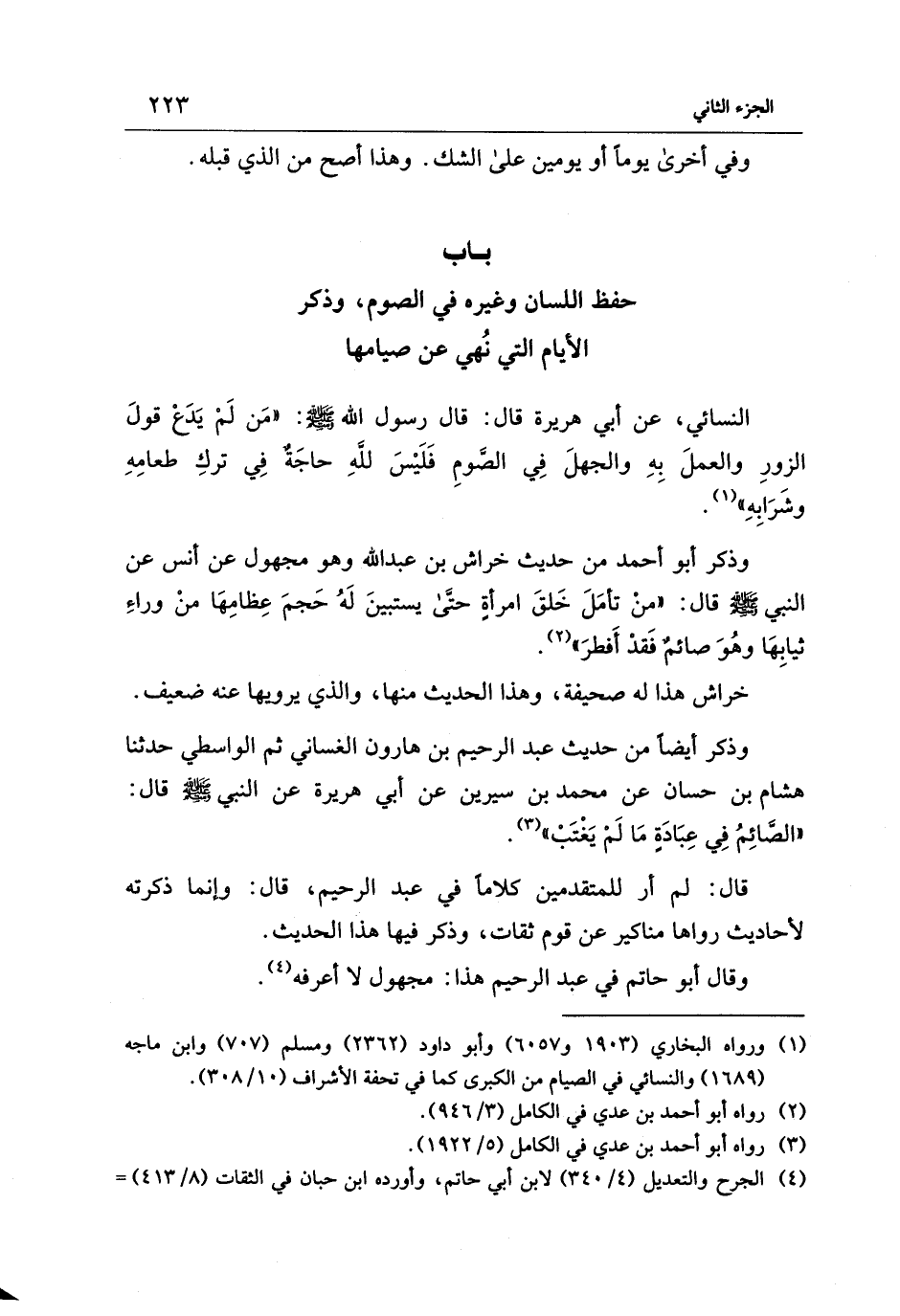 باب حفظ اللسان وغيره في الصوم، وذكر الأيام التي نُهي عن صيامها