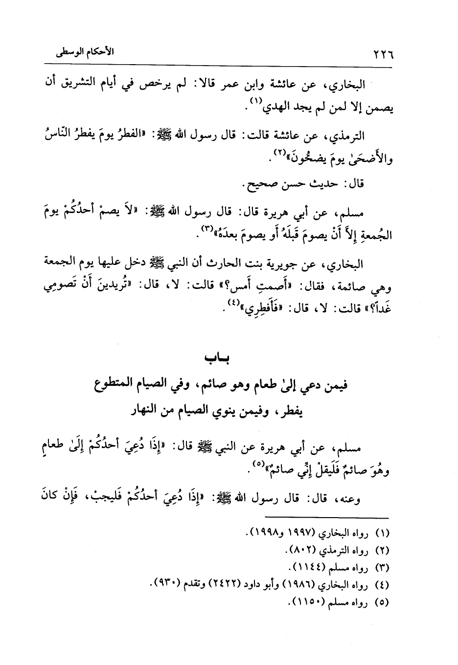 مسلم، عن أبي هريرة عن النبي - صلى الله عليه وسلم - قال: "إِذَا دُعِيَ أحدُكُمْ إِلَى طعامٍ وهُوَ صائمٌ فَلَيقلْ إِنِّي صائمٌ" (¬5).
