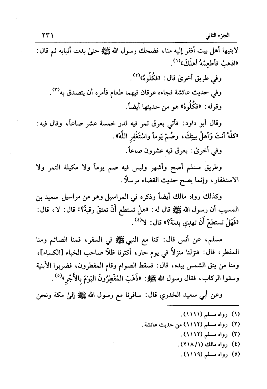 وطريق مسلم أصح وأشهر وليس فيه صم يومًا ولا مكيلة التمر ولا الاستغفار، وإنما يصح حديث القضاء مرسلًا.
