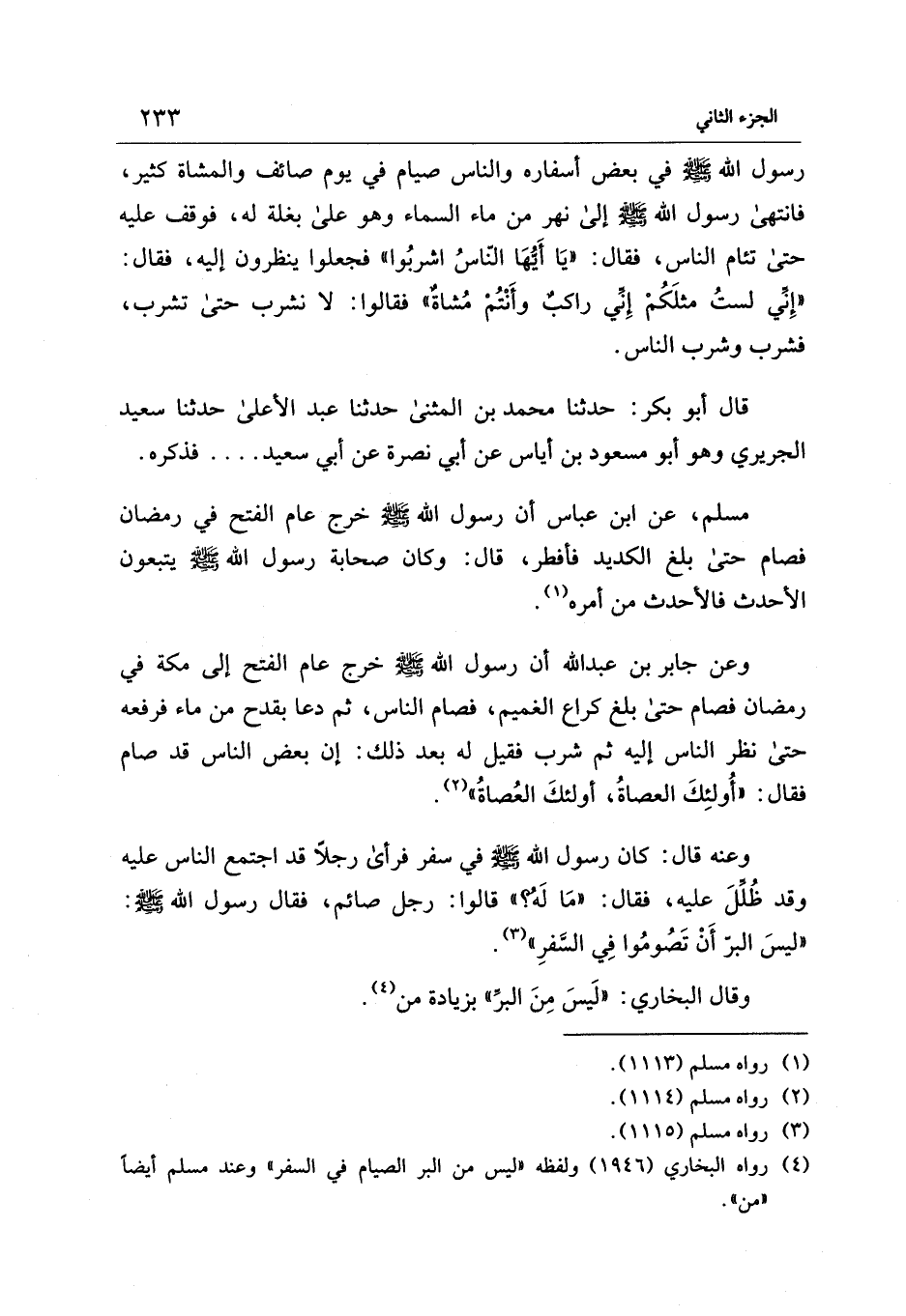 (¬4) رواه البخاري (1946) ولفظه "ليس من البر الصيام في السفر" وعند مسلم أيضًا "من".